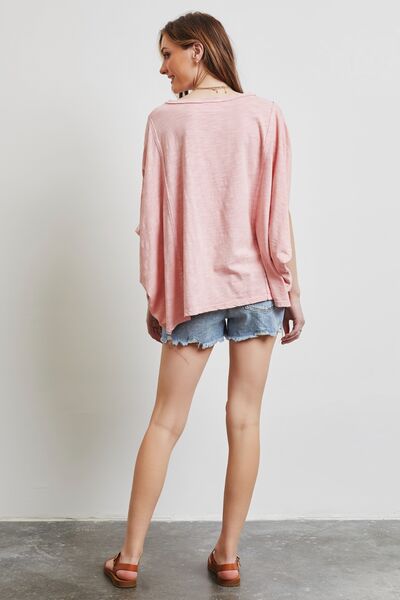 Full Size Garment-Dyed Boat Neck Oversized Top