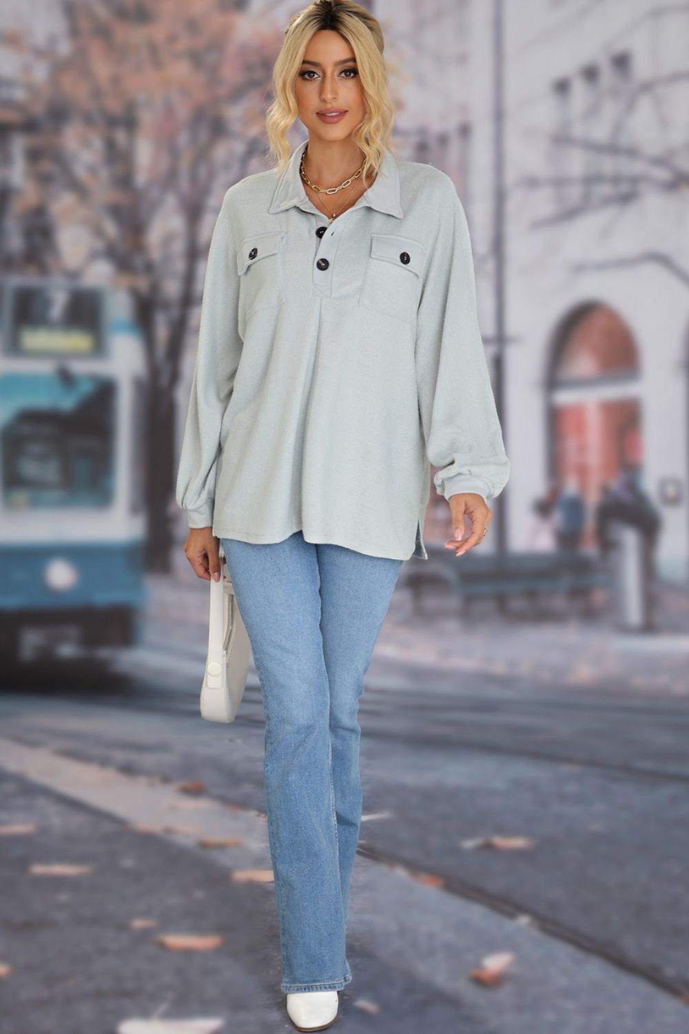 Full Size Half Button Collared Neck Long Sleeve Sweatshirt
