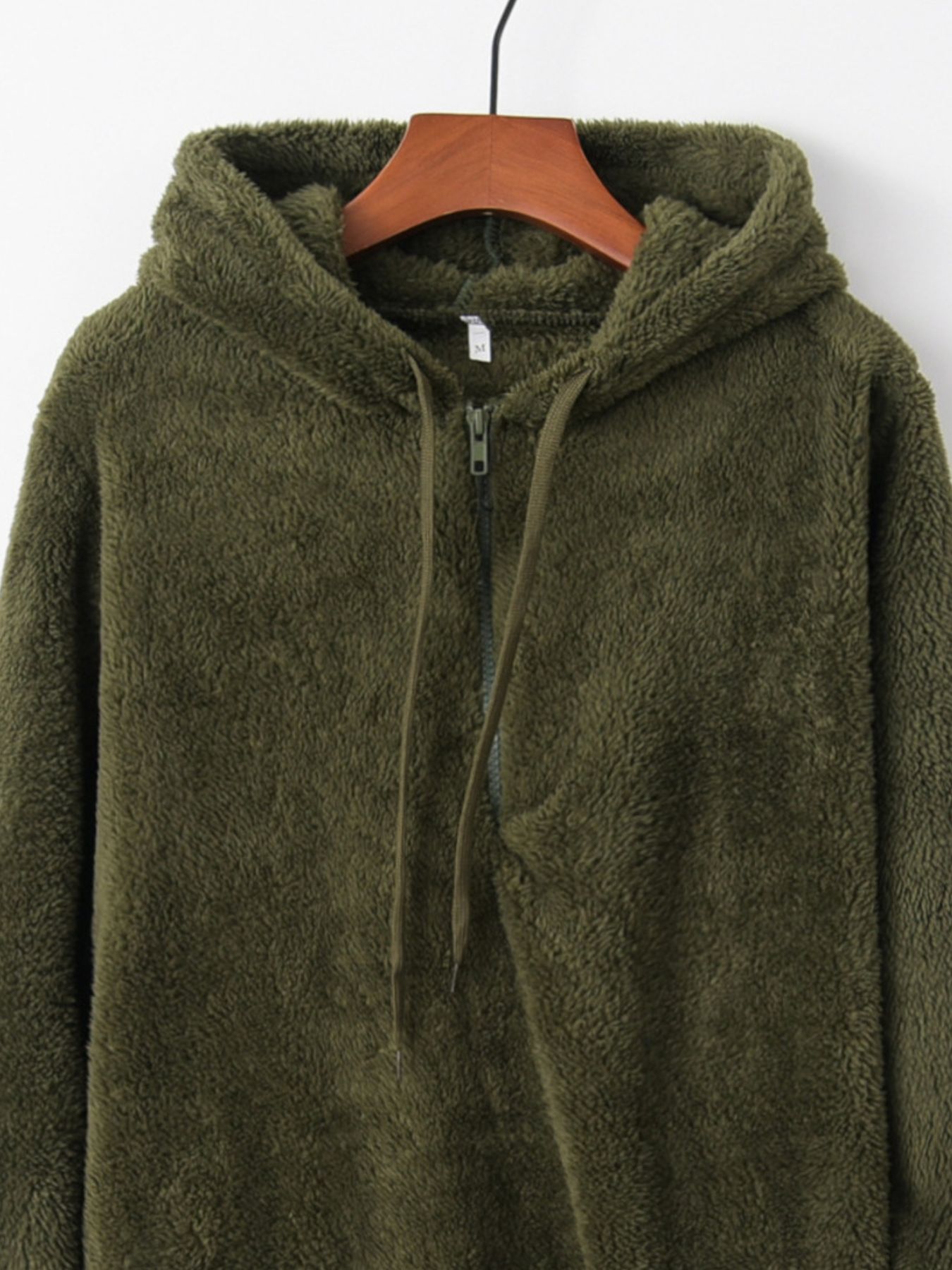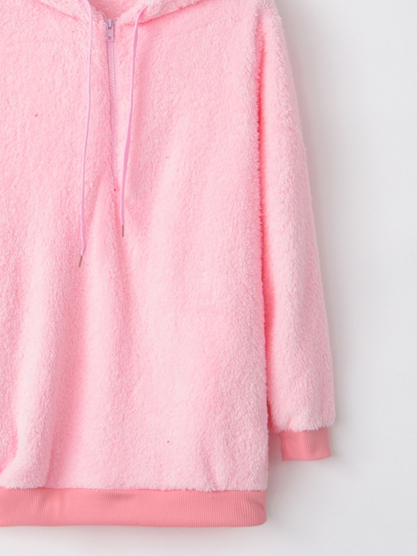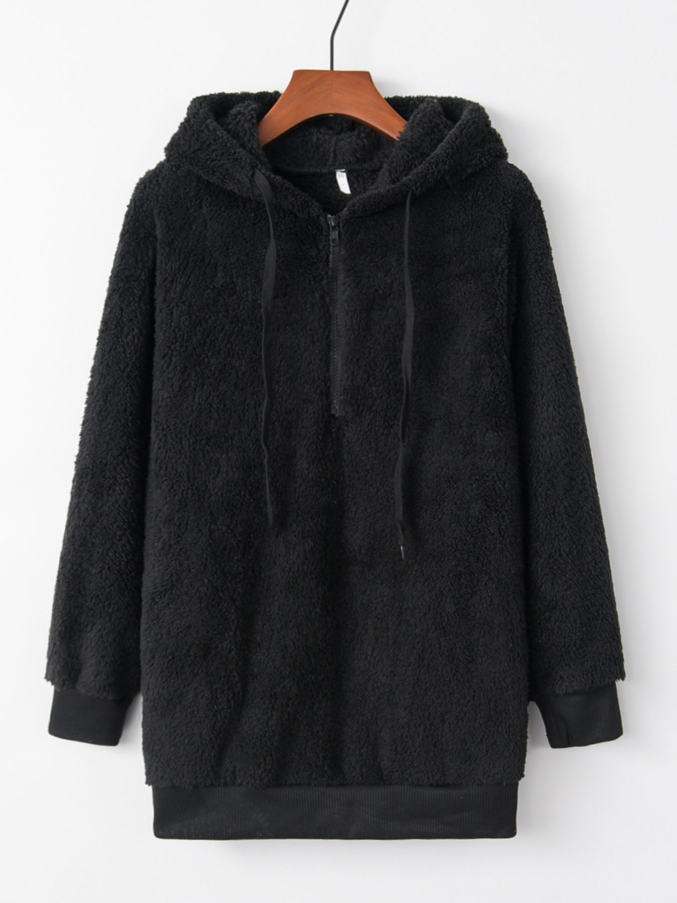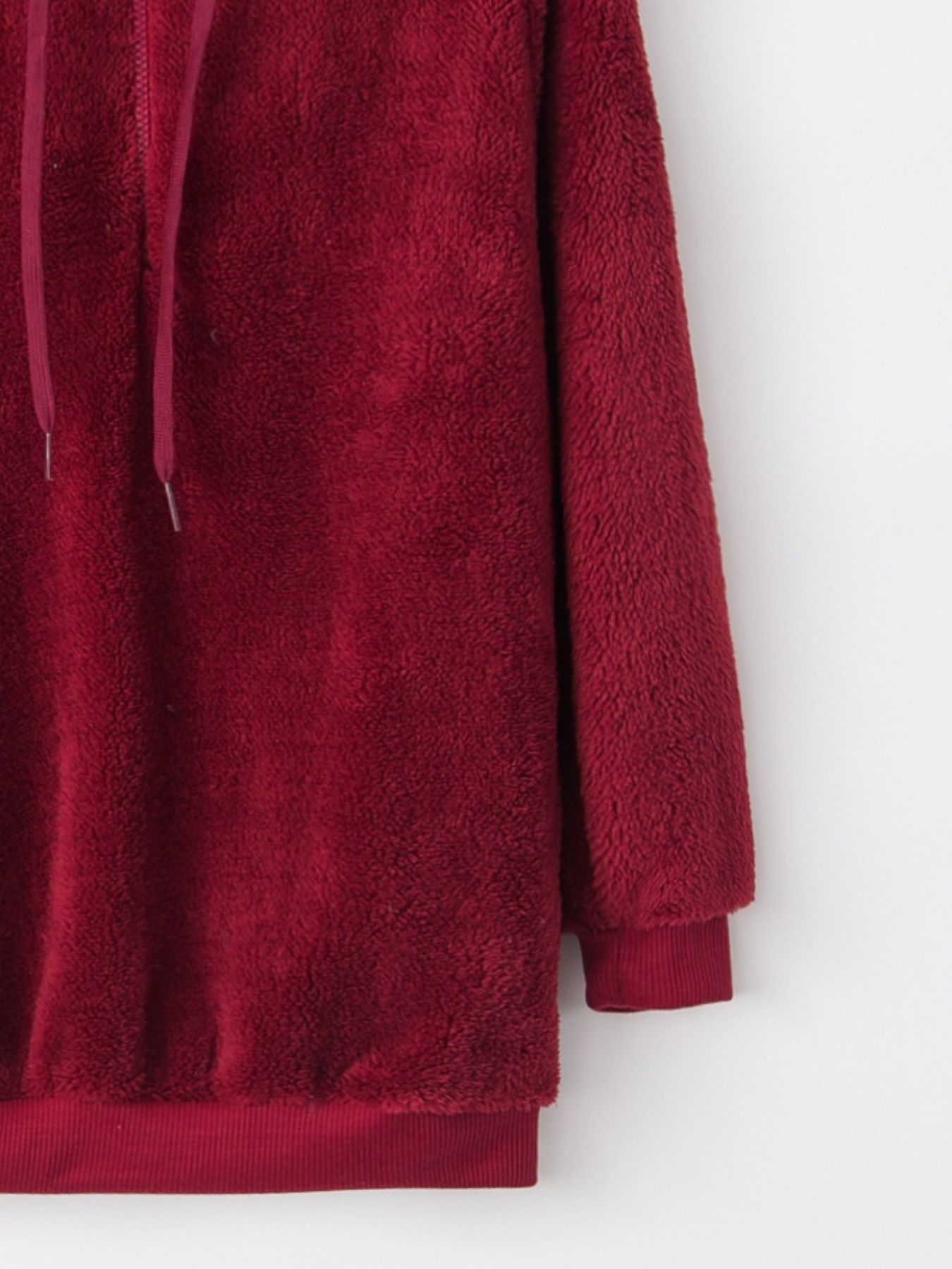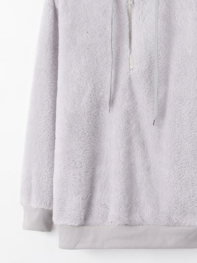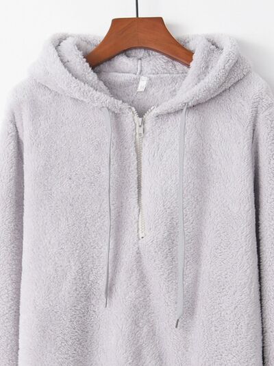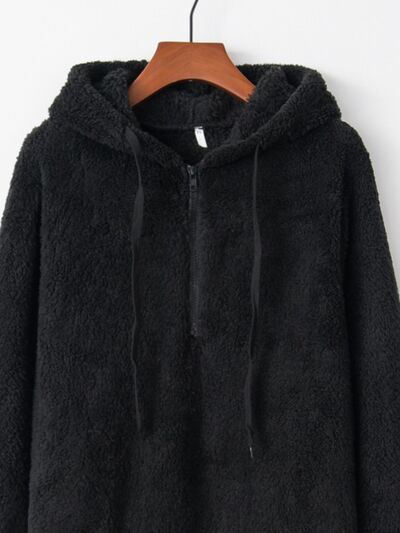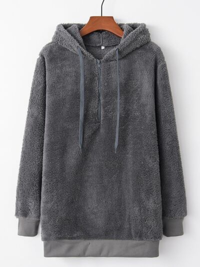 Full Size Half Zip Drawstring Fleece Hoodie Plus Size