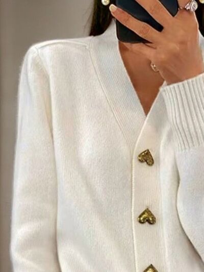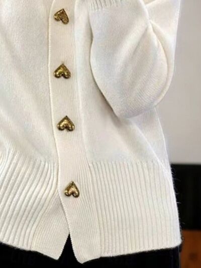 Full Size Heart-Button Knit Cardigan Plus Size