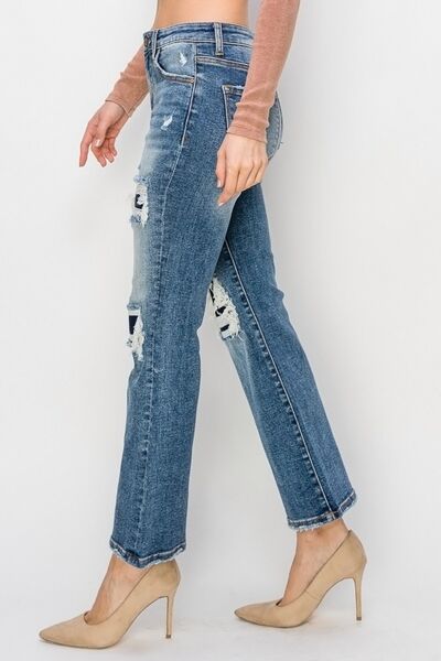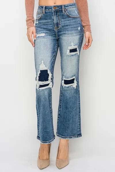 Full Size High Rise Distressed Ankle Flare Jeans