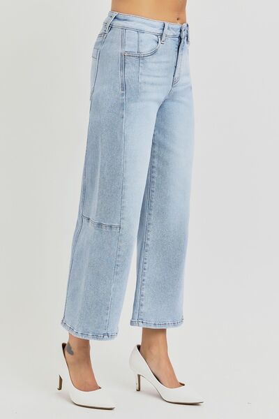 Full Size High Rise Seamed Detail Wide Leg Crop Jeans