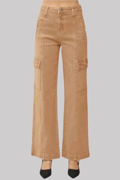 Full Size High Rise Wide Leg Cargo Jeans