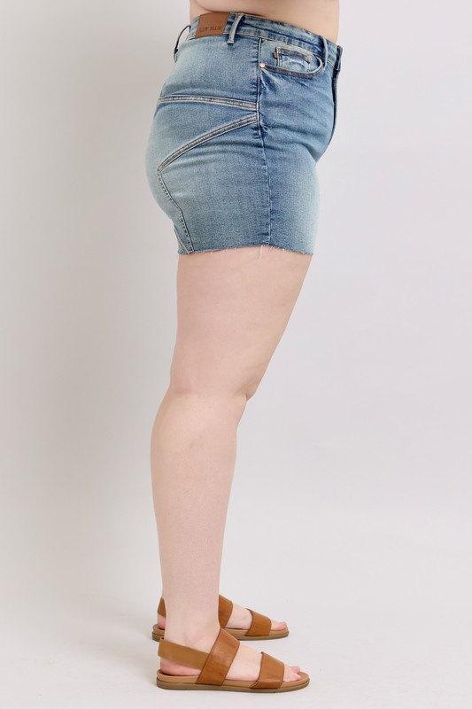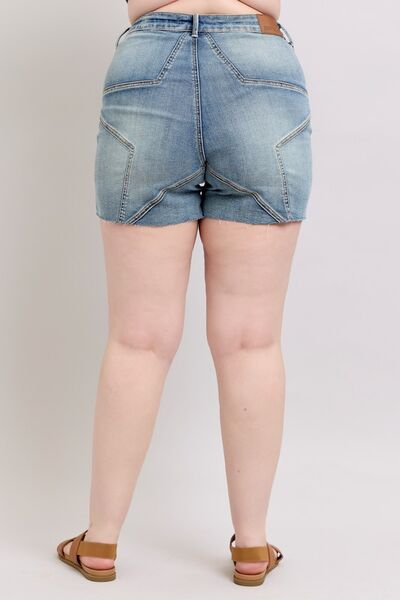 Full Size High Waist Star Seam Detail Denim Shorts Plus Size