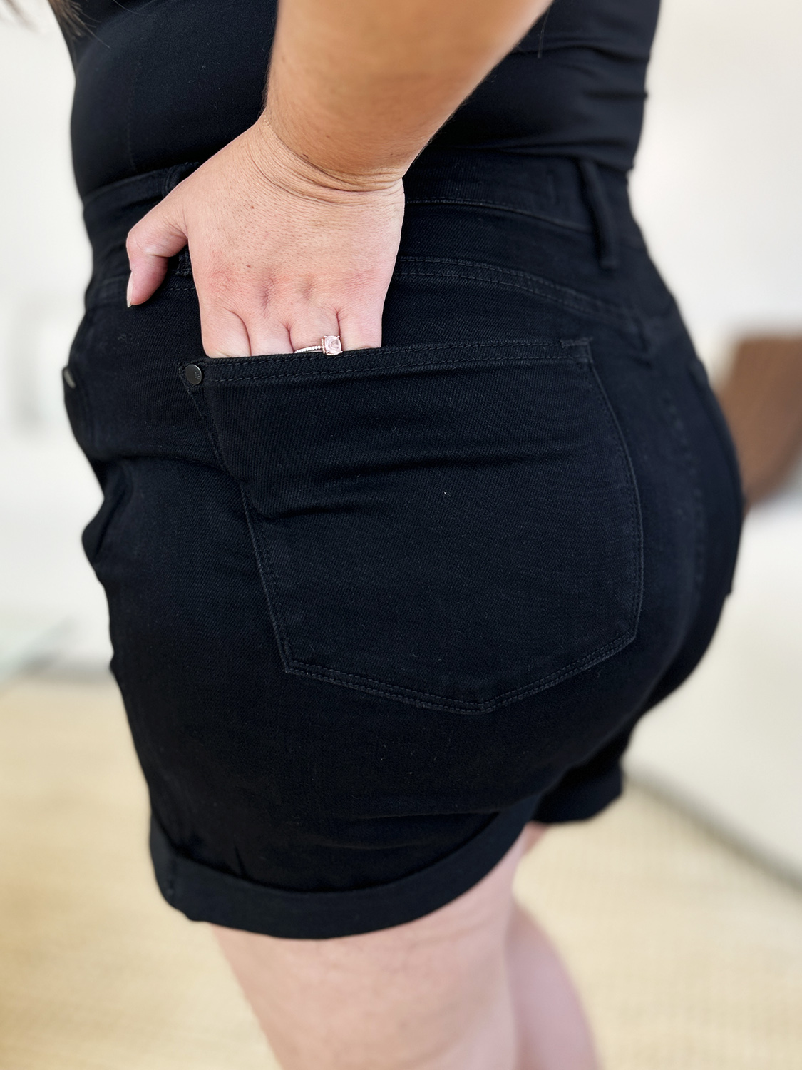 Full Size High Waist Tummy Control Cuffed Denim Shorts