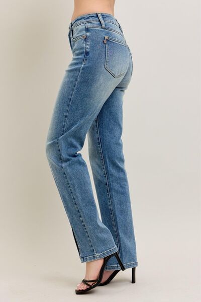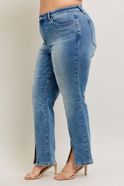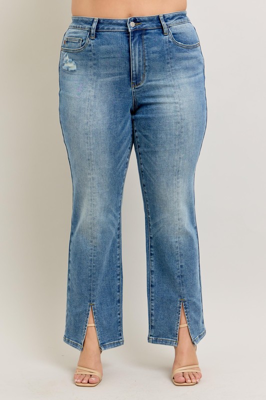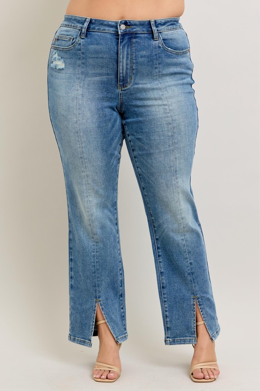 Full Size High Waist Vintage Wash Front Seam & Slit Straight Plus Size