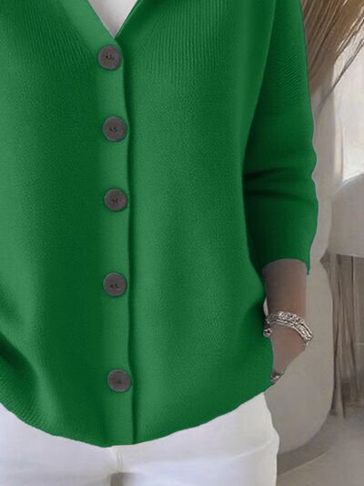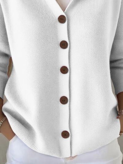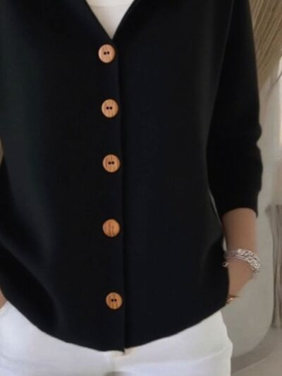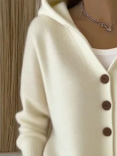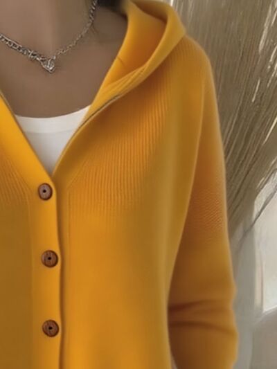 Full Size Hooded Button-Down Knit Cardigan Plus Size