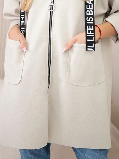 Full Size Hooded Zip-Up Longline Outerwear Plus Size