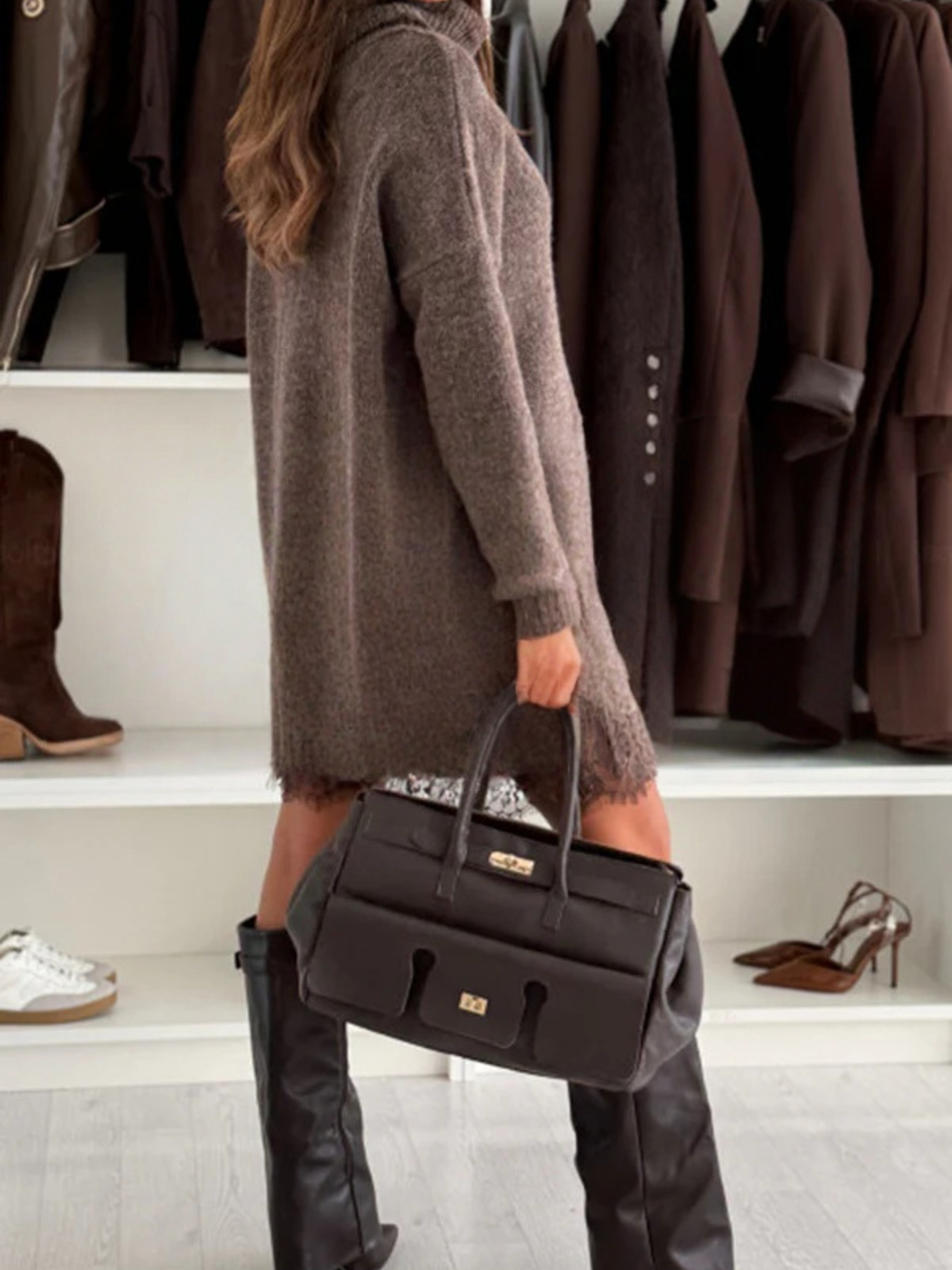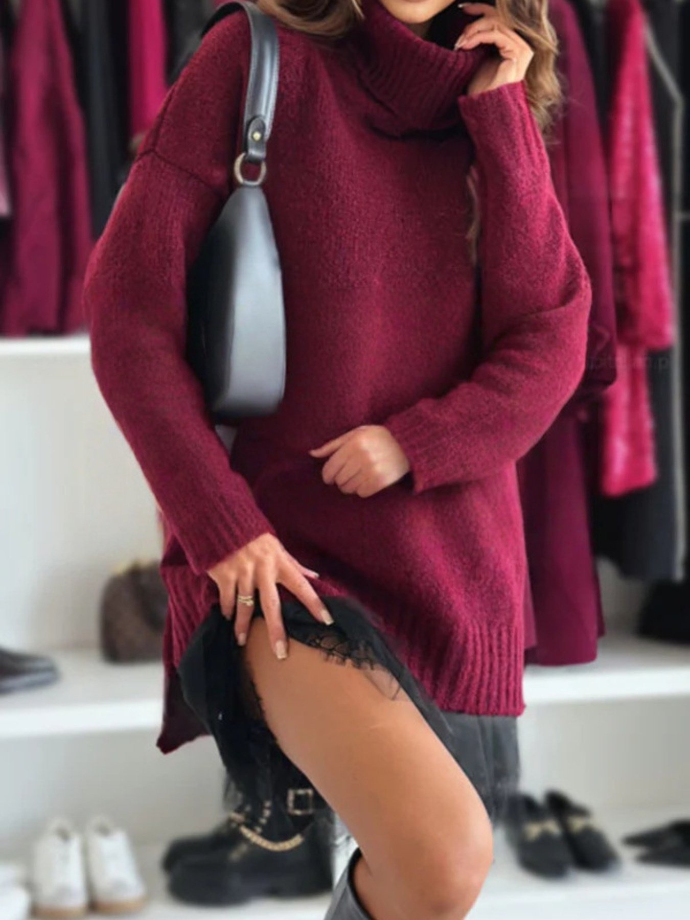 Full Size Lace Detail Cami Dress and Turtleneck Oversized Sweater Set Plus Size