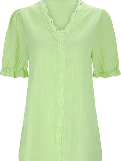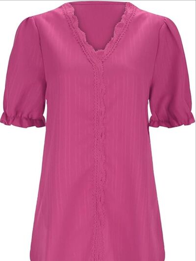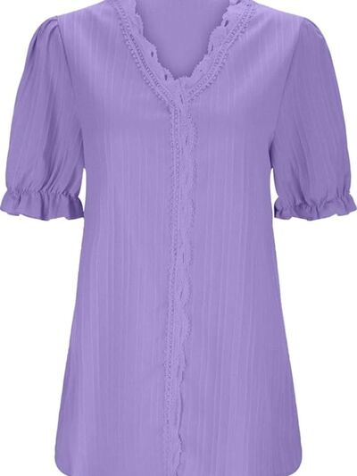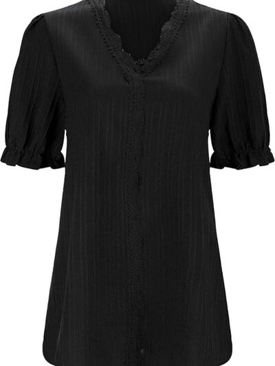 Full Size Lace Detail V-Neck Blouse Plus Size