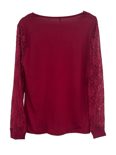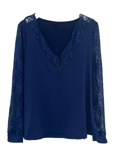 Full Size Lace Detail V-Neck Long Sleeve Blouse