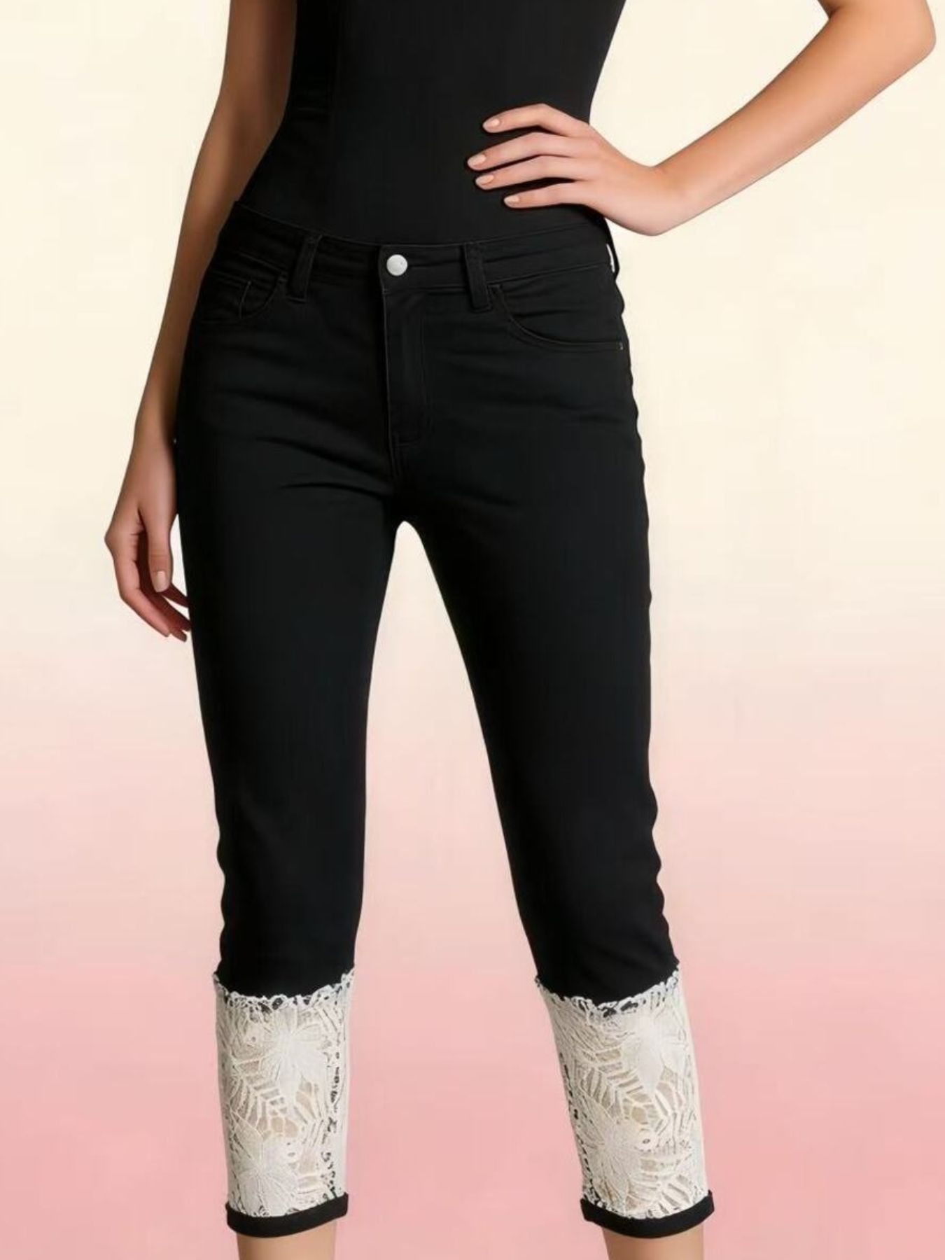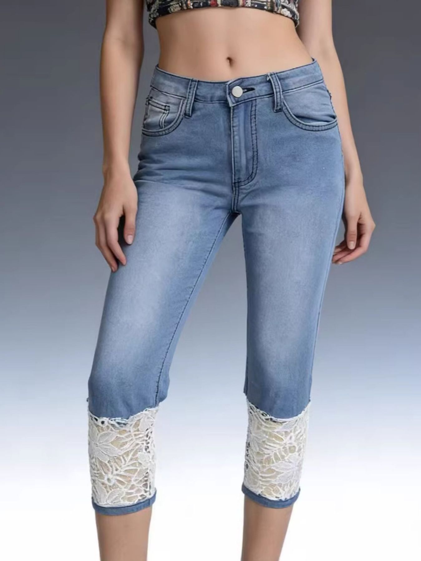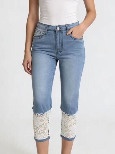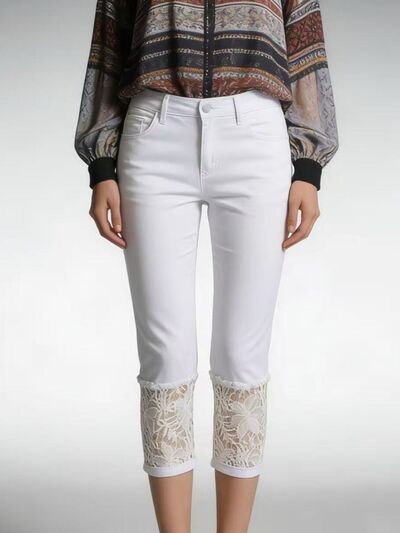 Full Size Lace Trimmed Capri Jeans Plus Size