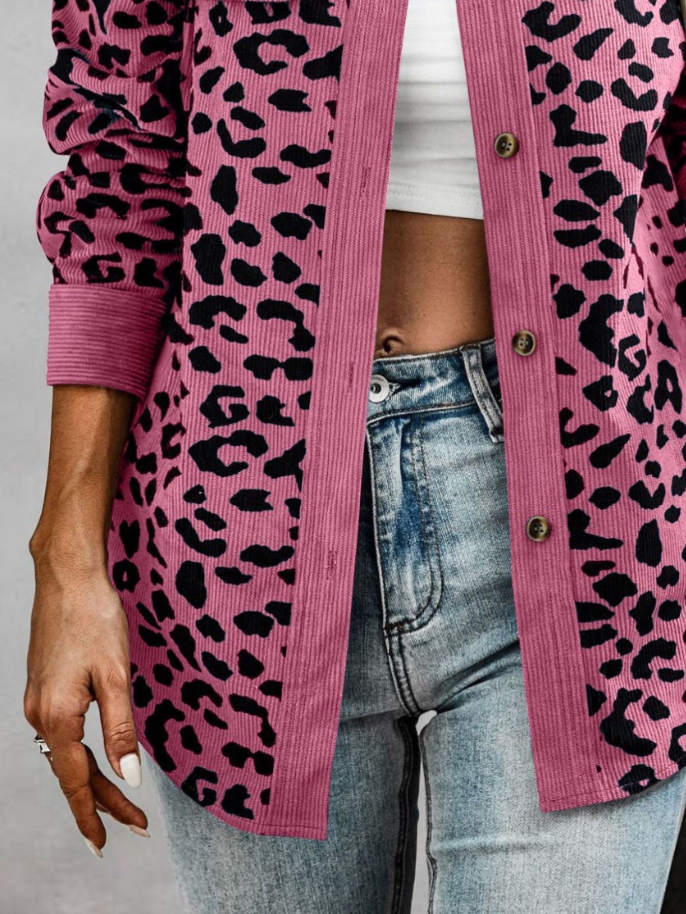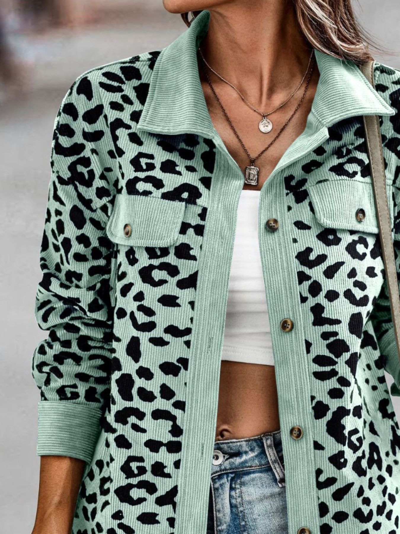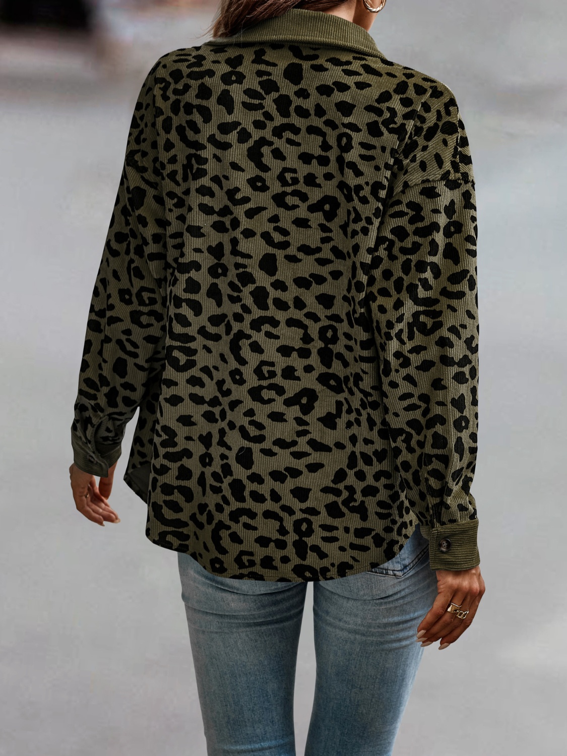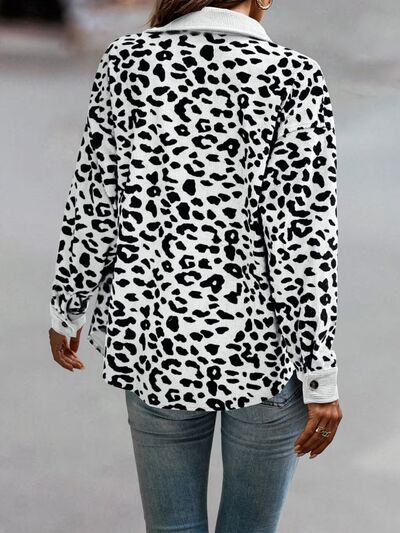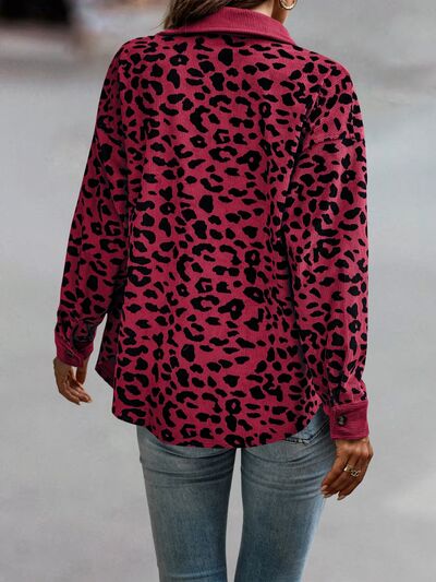 Full Size Leopard Print Button-Down Jacket Plus Size