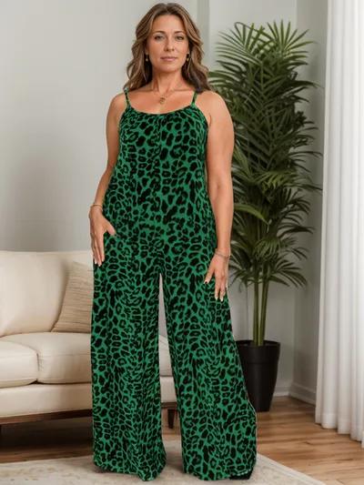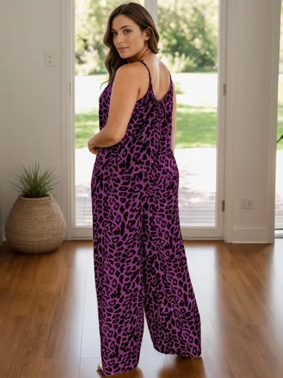 Full Size Leopard Scoop Neck Wide Leg Jumpsuit