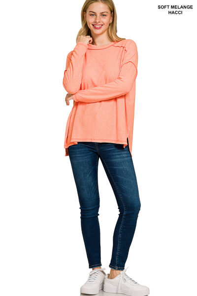Full Size Melange Hacci Exposed Seam Hi-low Tee Plus Size