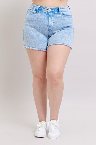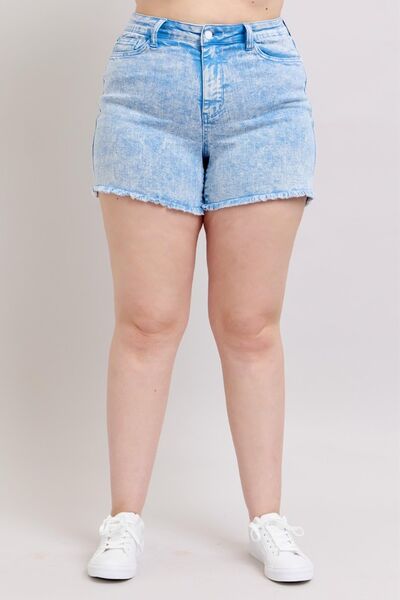 Full Size Mid Rise Garment Dyed Denim Shorts Plus Size