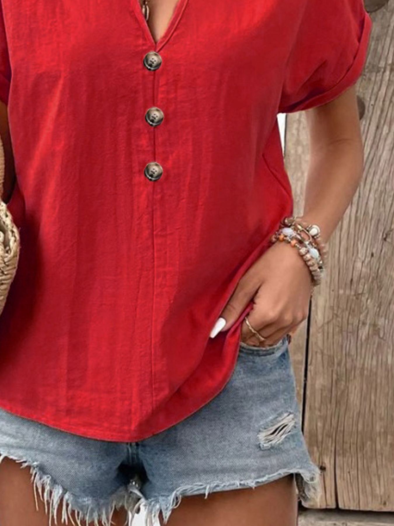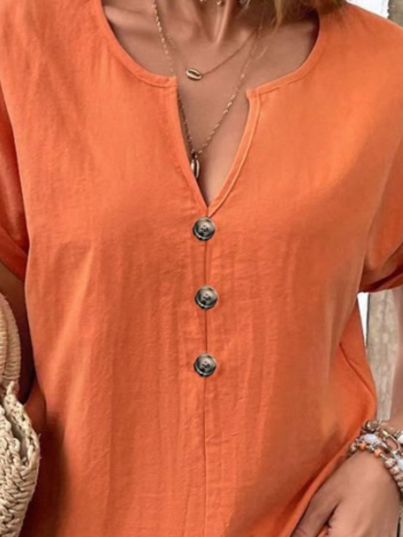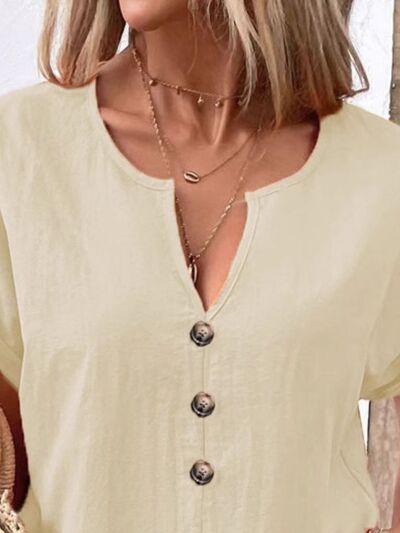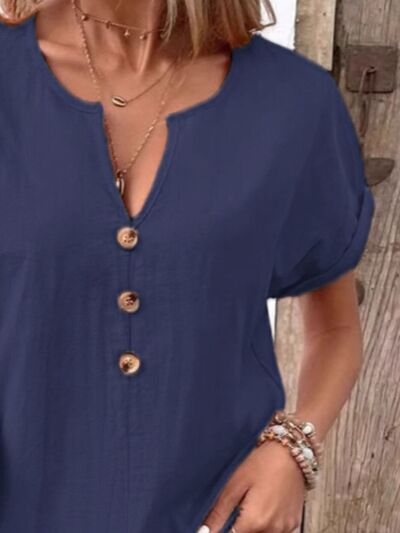 Full Size Notched Short Sleeve Top Plus Size