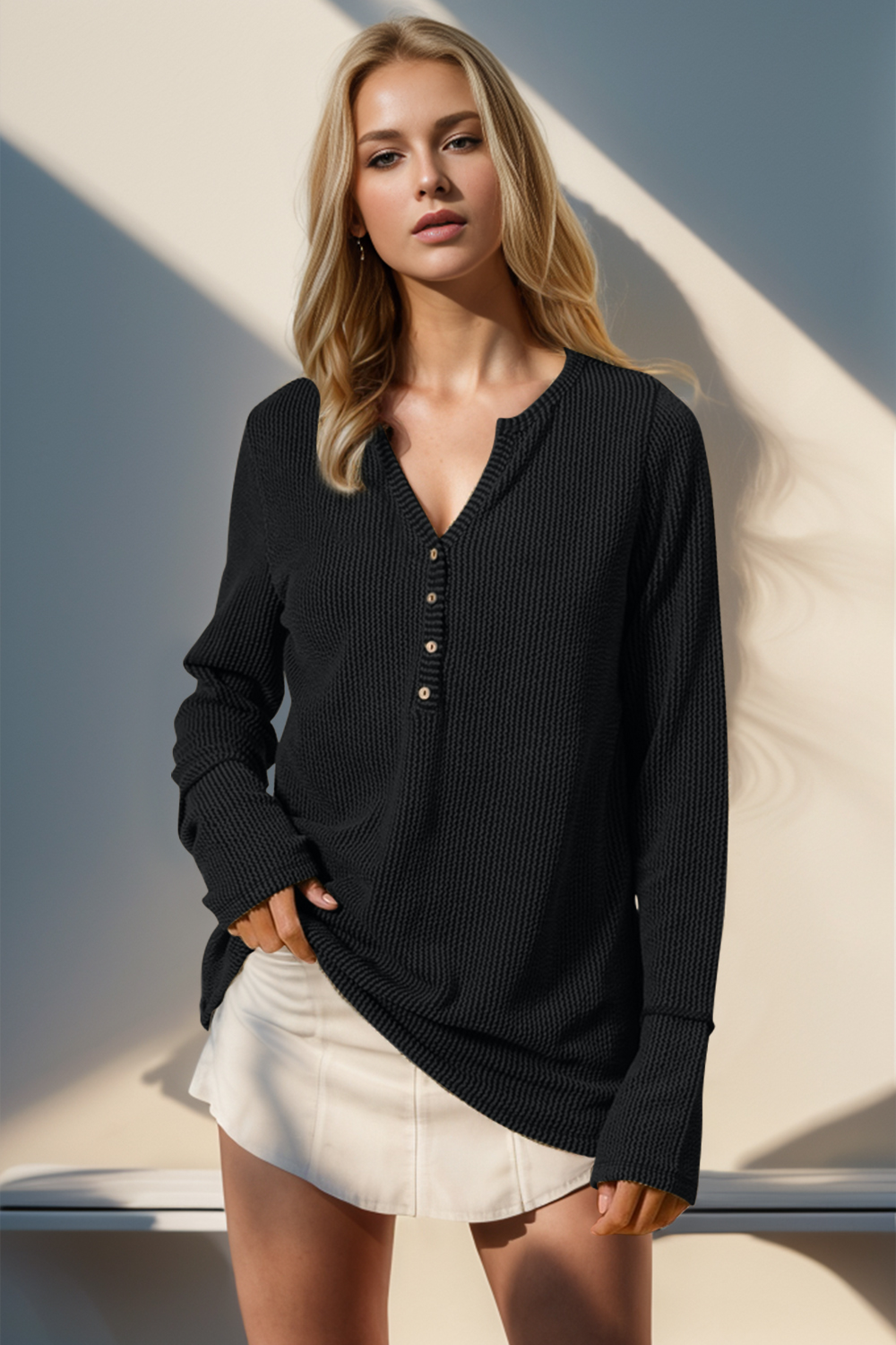 Full Size Notched Thumbhole Long Sleeve T-Shirt