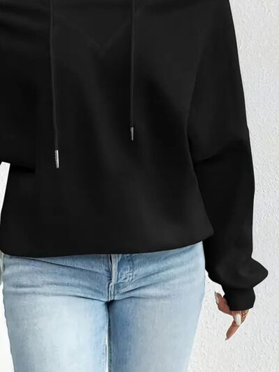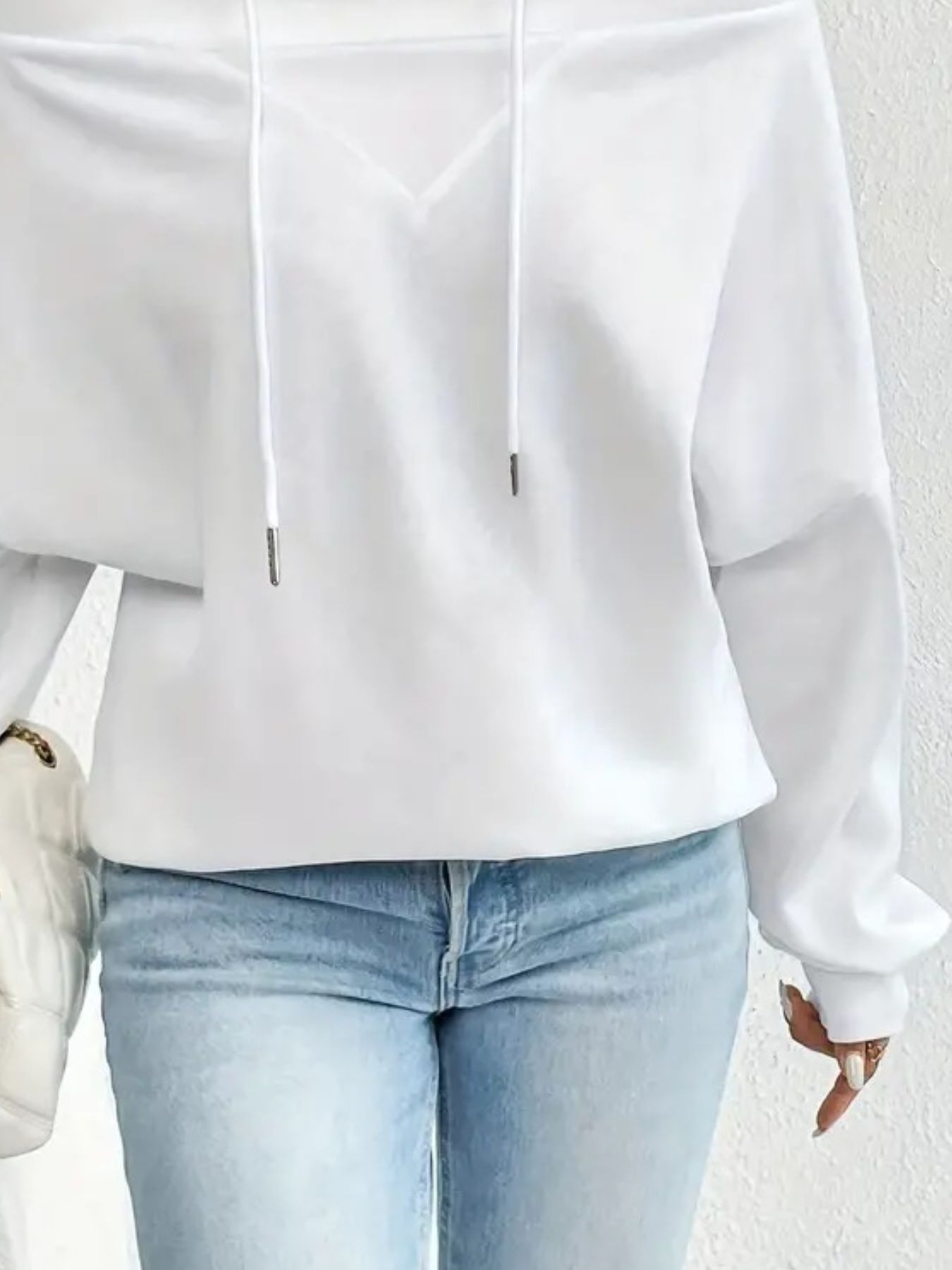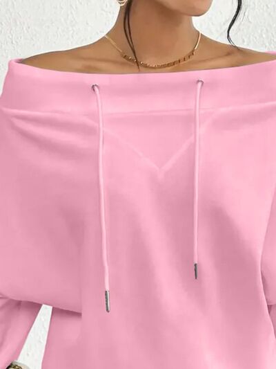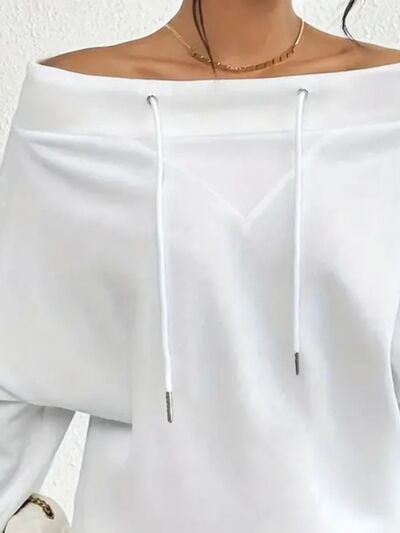 Full Size Off-Shoulder Drawstring Long Sleeve Top Plus Size