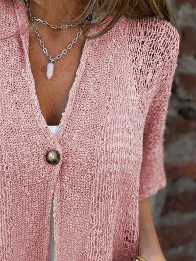 Full Size One Button Openwork Cardigan Plus Size