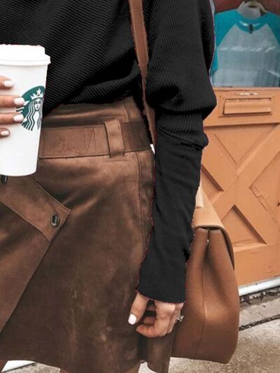 Full Size One-Shoulder Ribbed Sweater Plus Size