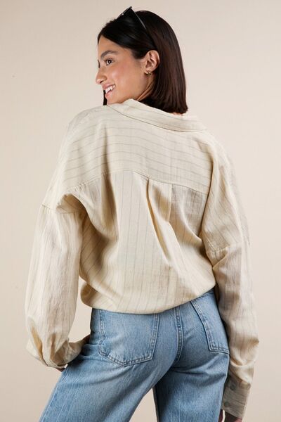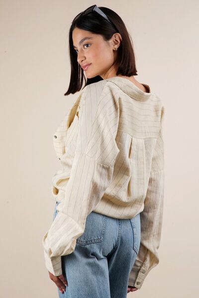 Full Size Oversized Striped Button Down Shirt Top Plus Size