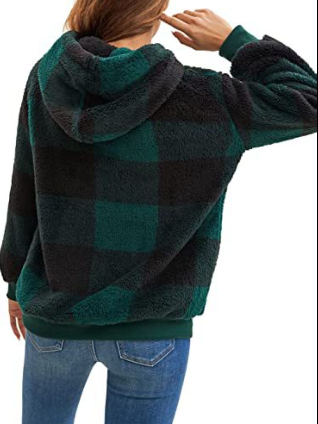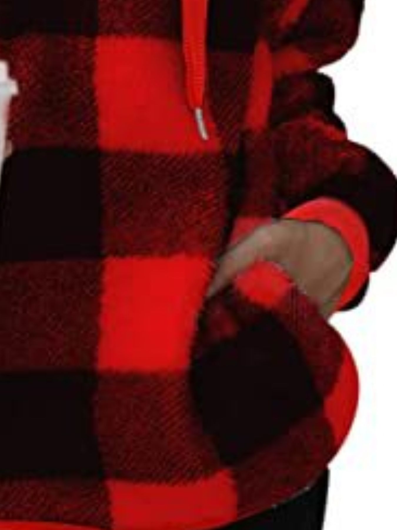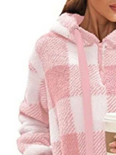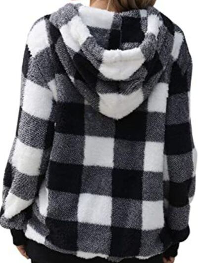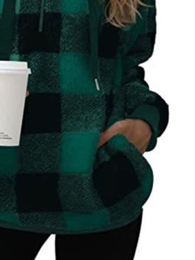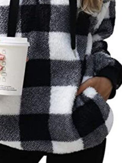 Full Size Plaid Sherpa Drawstring Hoodie Plus Size