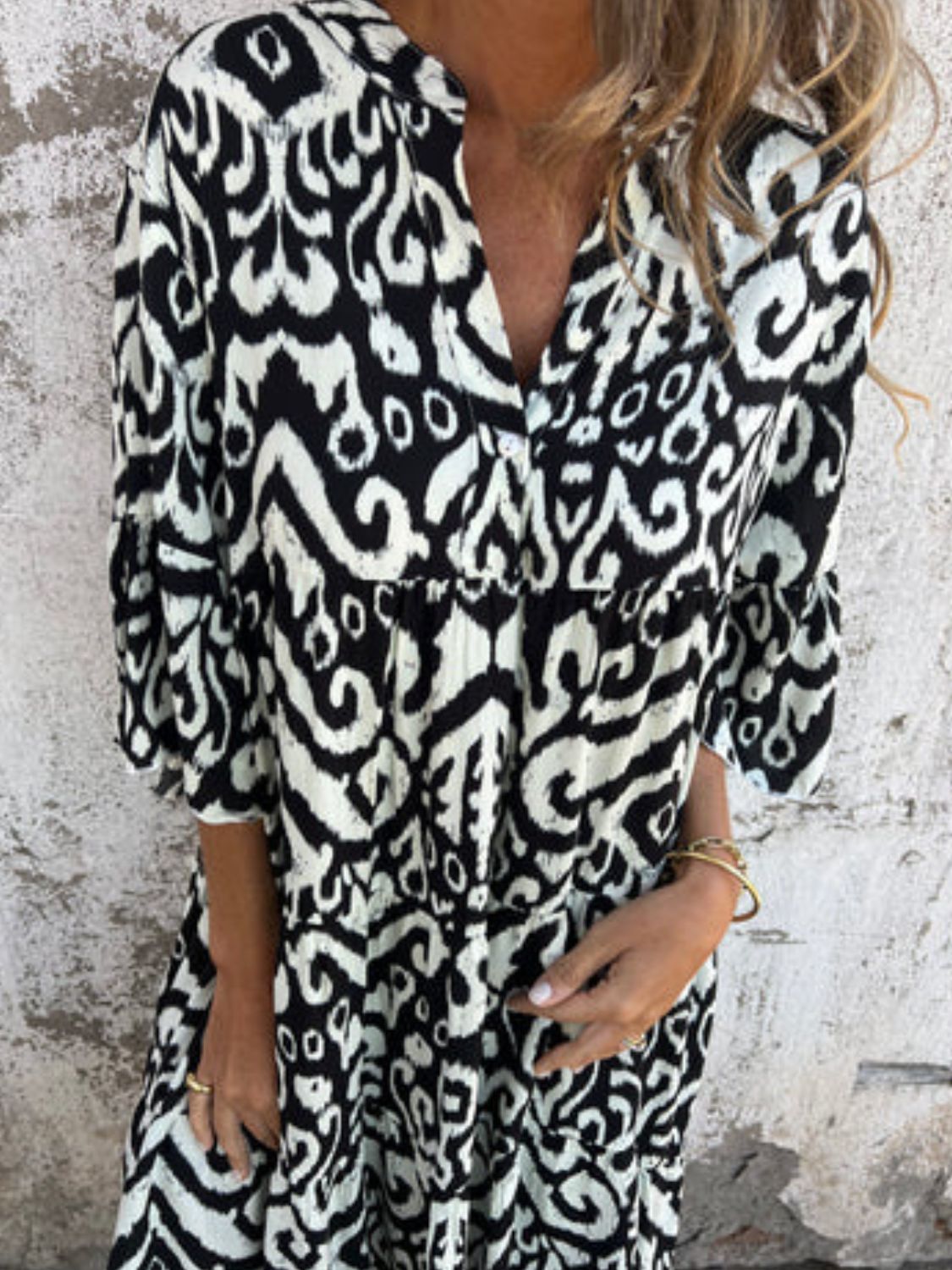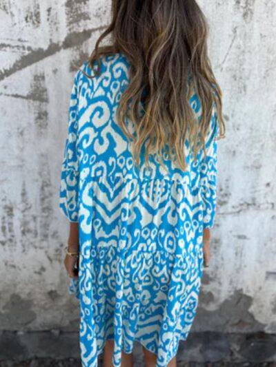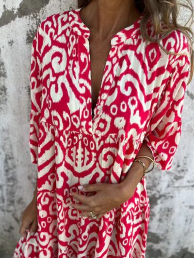 Full Size Printed Notched Half Sleeve Dress Plus Size