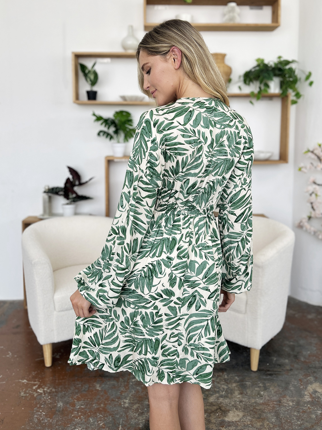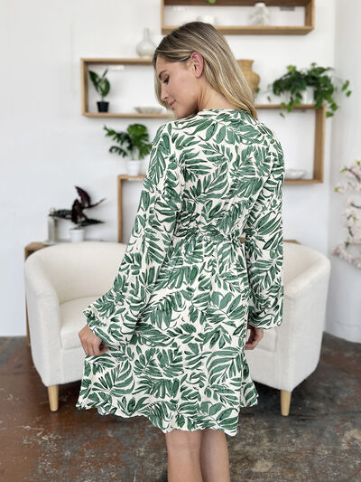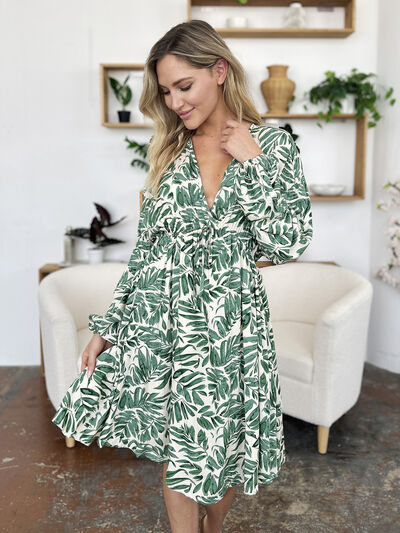Full Size Printed Ruched Balloon Sleeve Dress