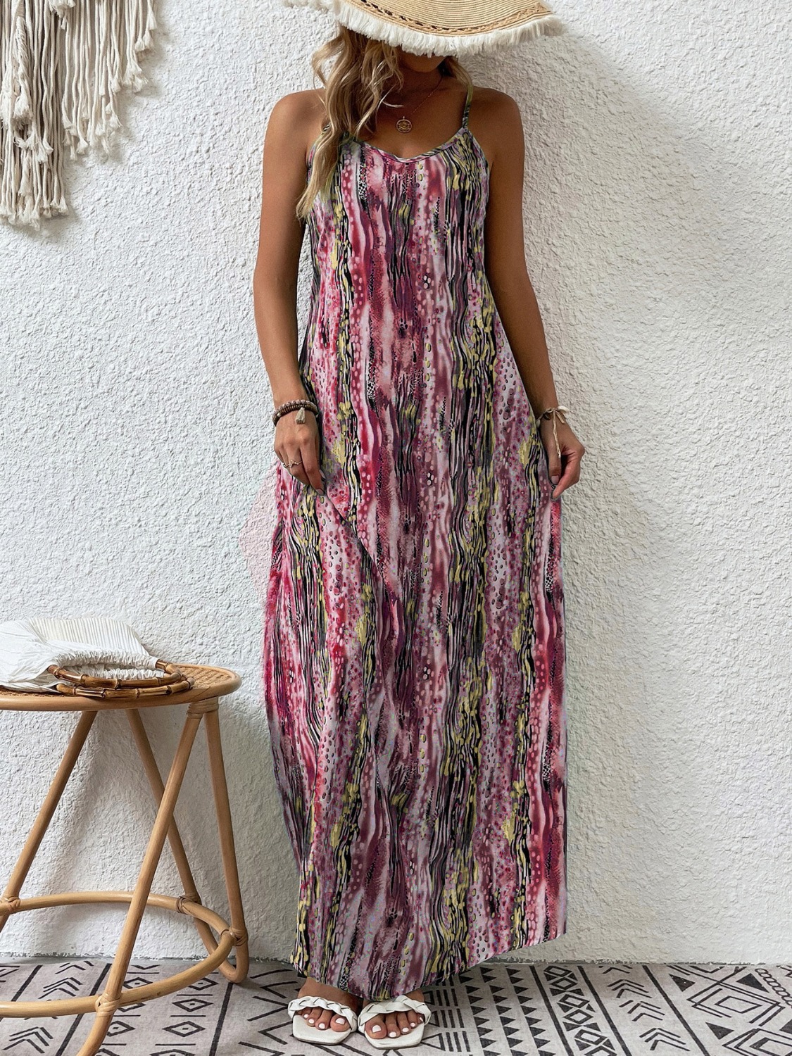 Full Size Printed Scoop Neck Maxi Cami Dress