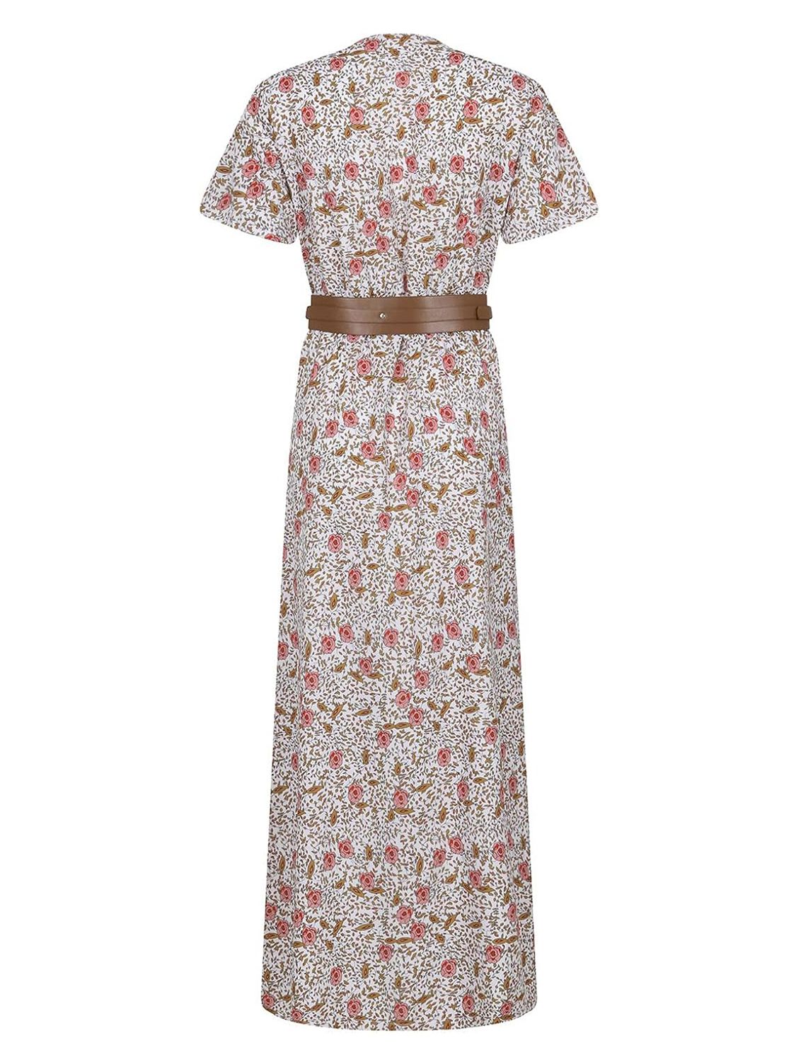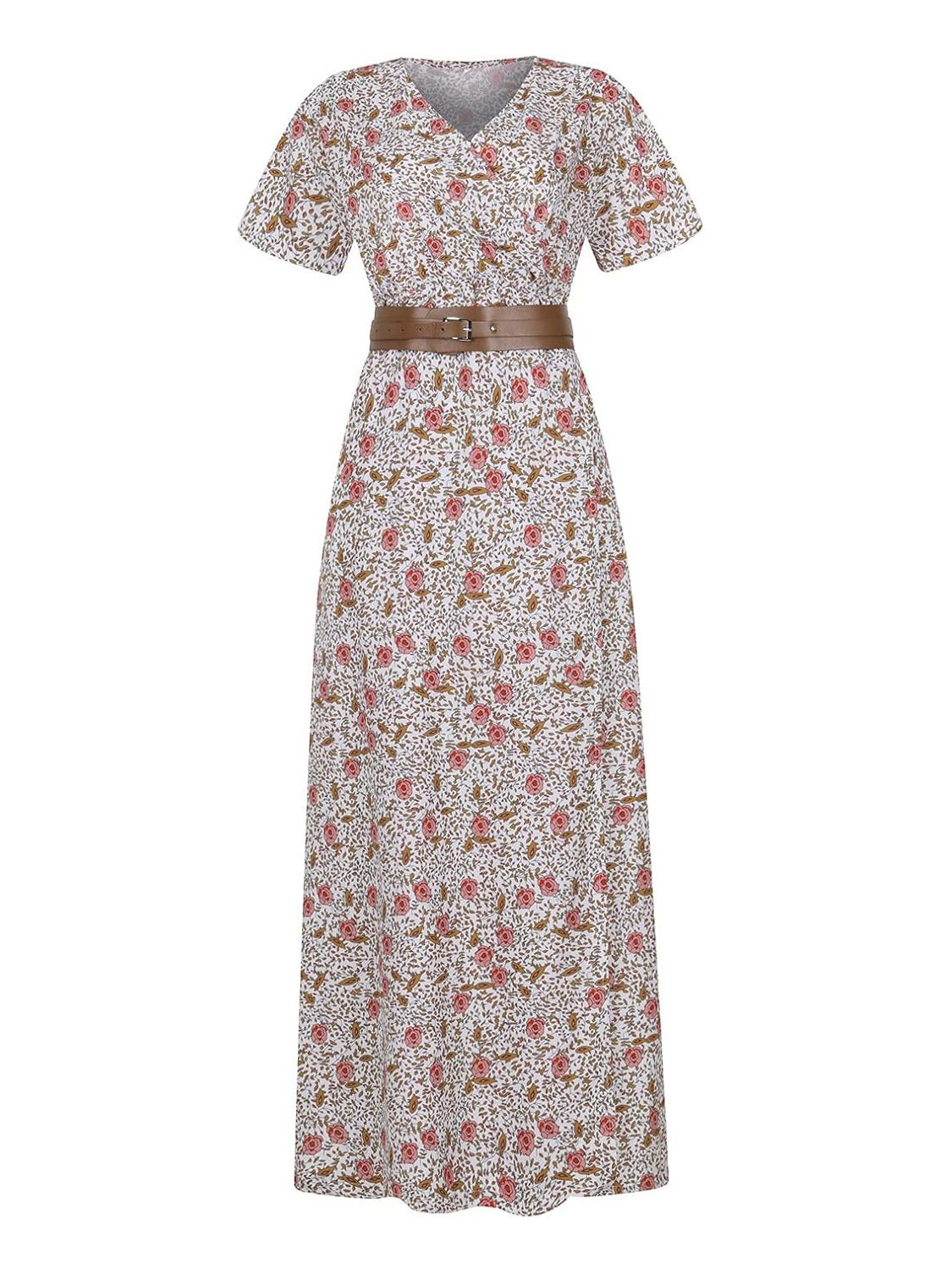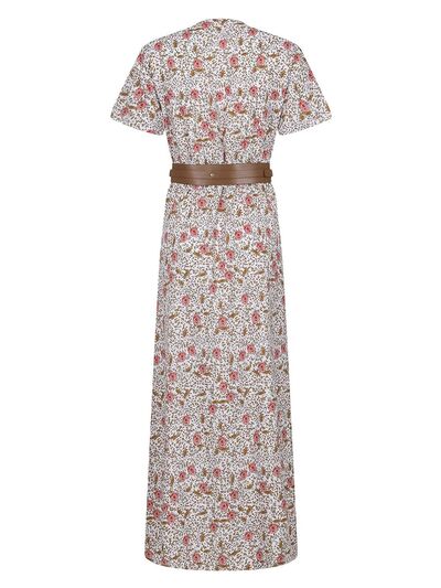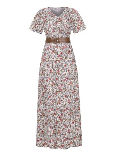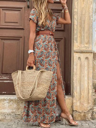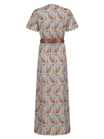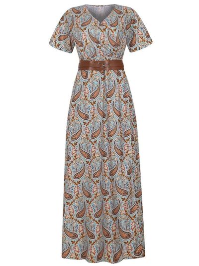 Full Size Printed V-Neck Short Sleeve Maxi Dress Plus Size