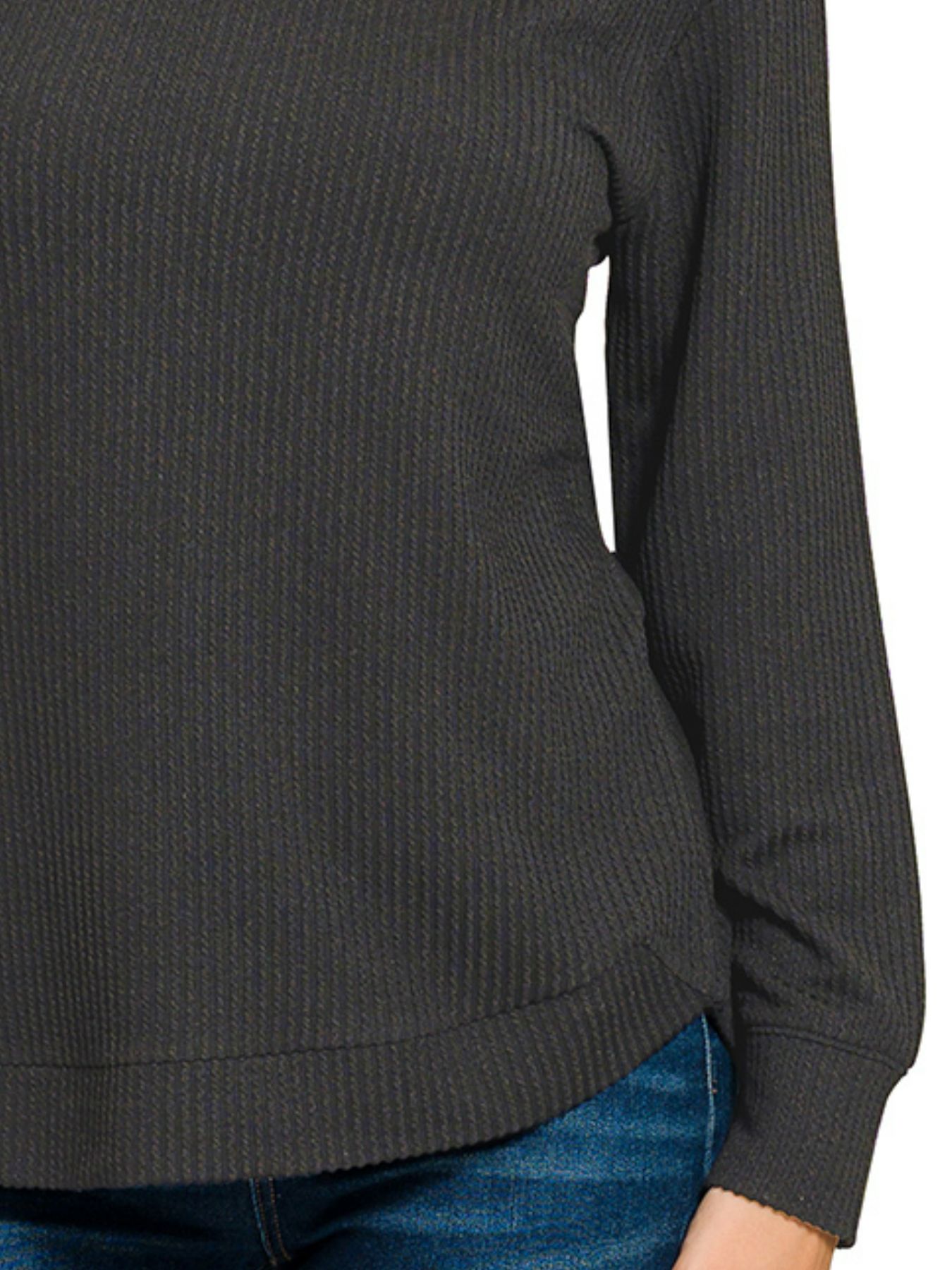 Full Size Raised Rib Round Neck Long Sleeve Top Plus Size