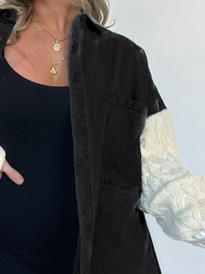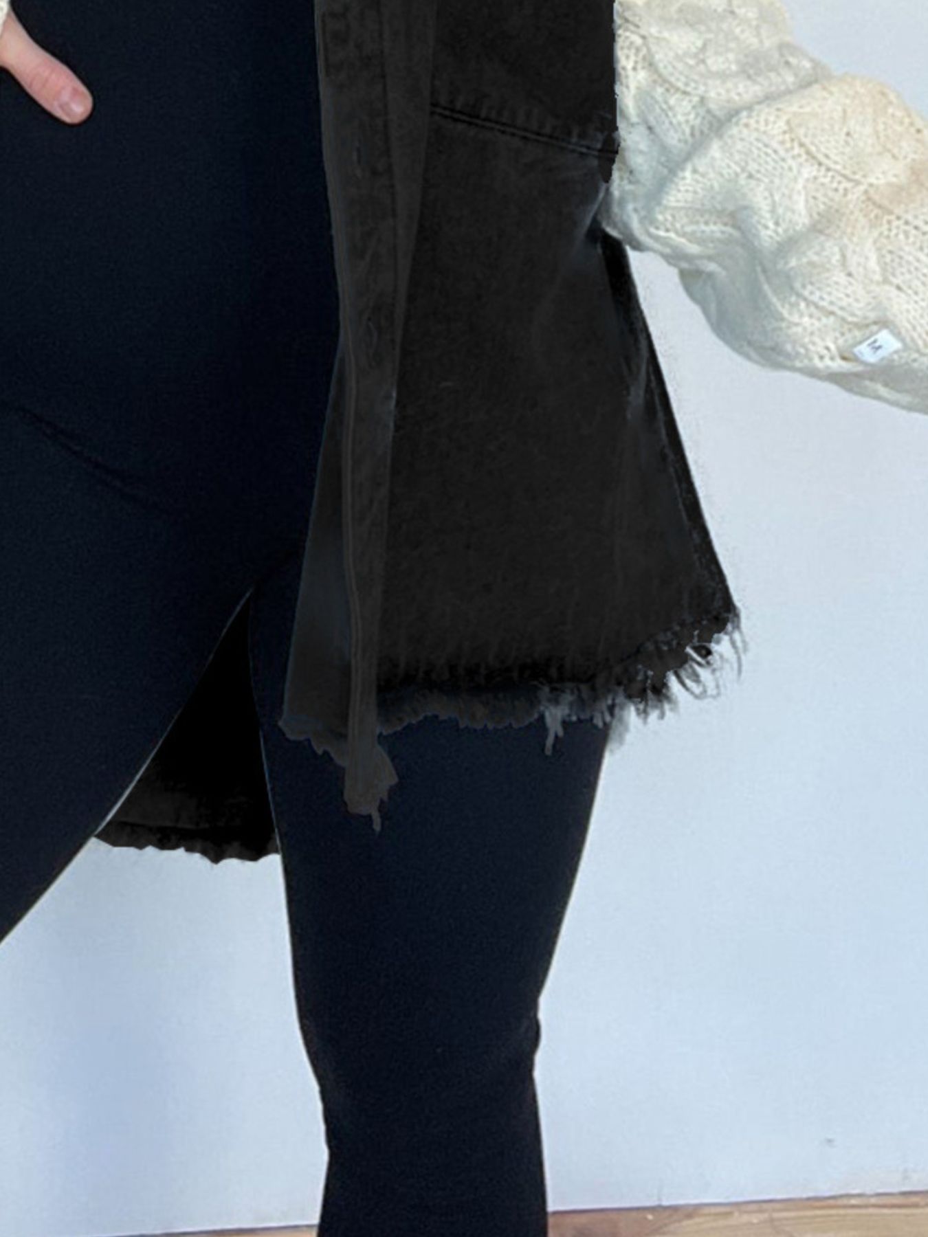 Full Size Raw Hem Button Up Patchwork Denim Jacket Plus Size