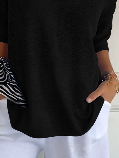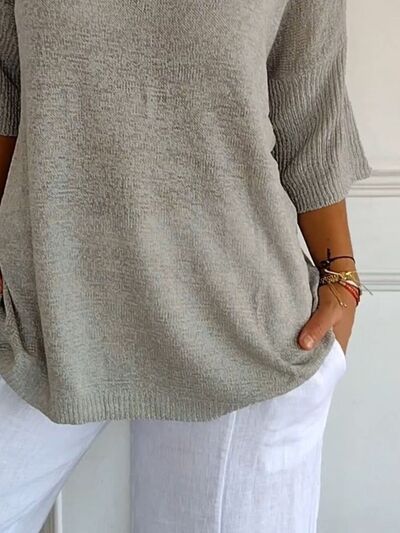 Full Size Relaxed Fit Ribbed Hem Sweater Plus Size