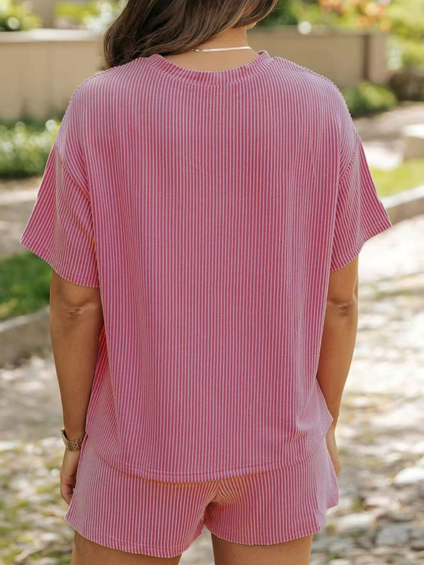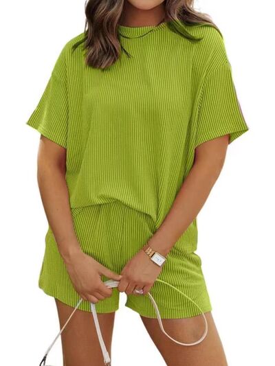 Full Size Ribbed Short Sleeve Top and Shorts Two-Piece Set Plus Size