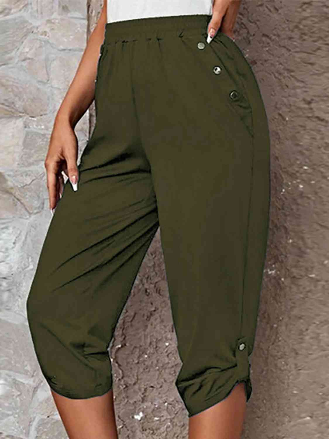 Full Size Roll-Tab Capris Pants