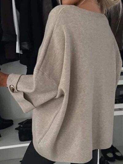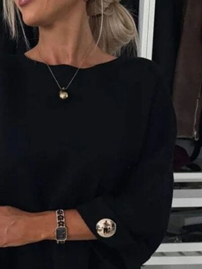 Full Size Round Neck Drop Shoulder Top with Ribbed Trim Plus Size