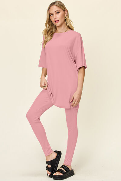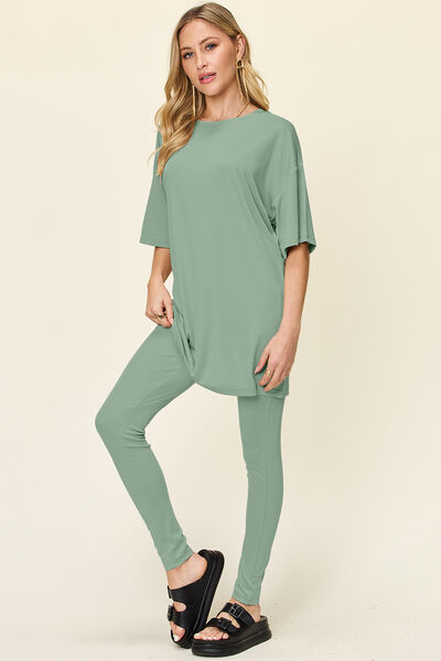 Full Size Round Neck Dropped Shoulder T-Shirt and Leggings Set