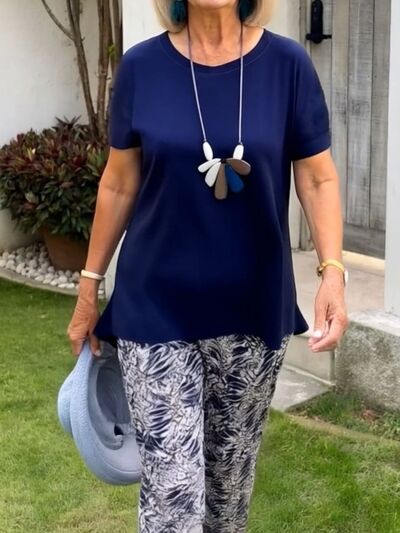Full Size Round Neck Short Sleeve Top and Pants Set Plus Size