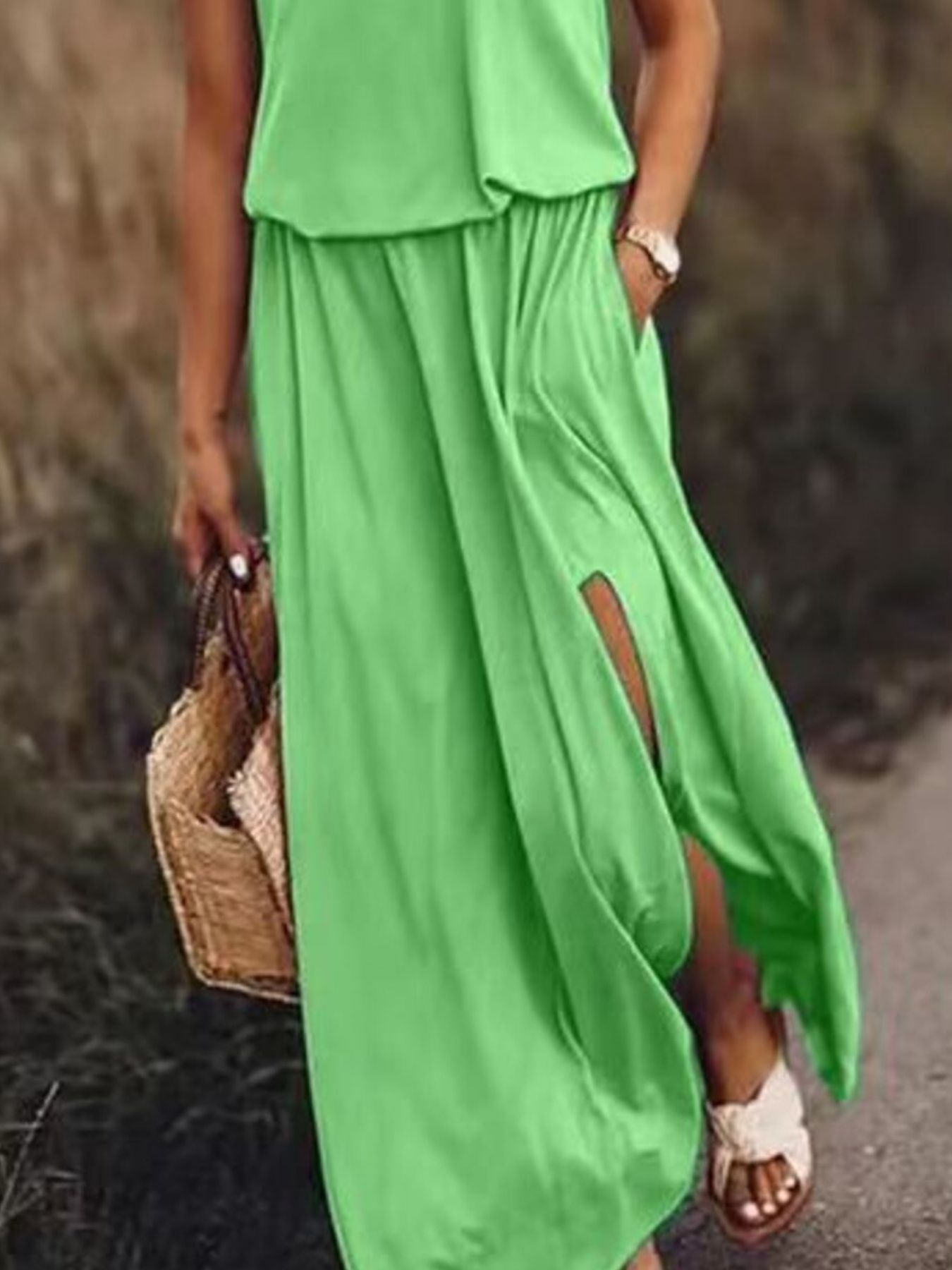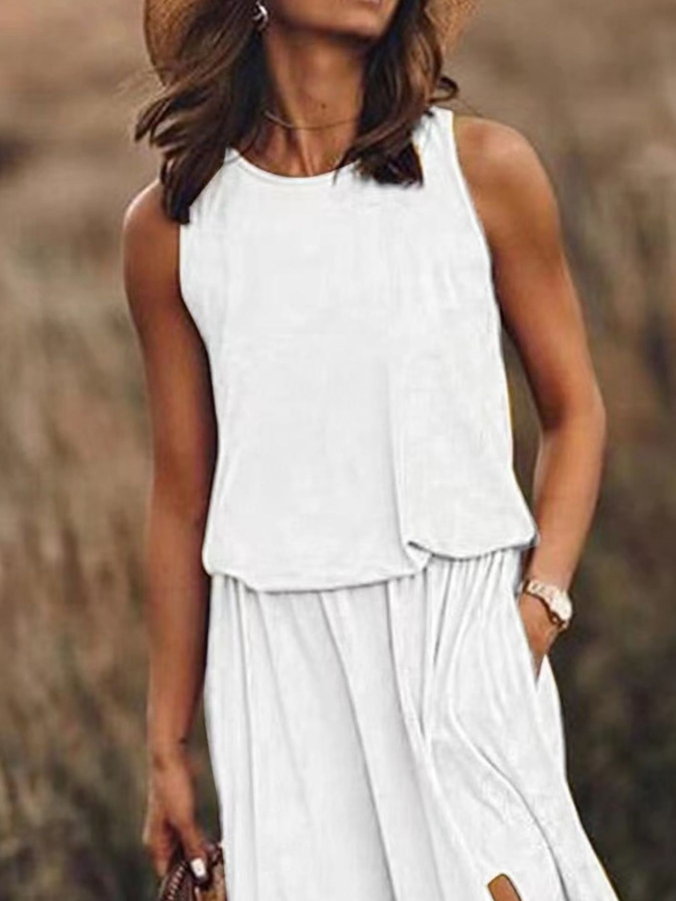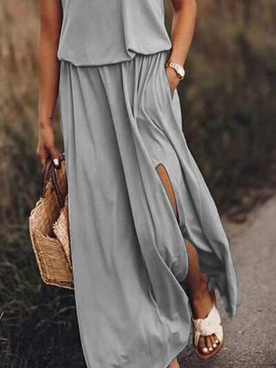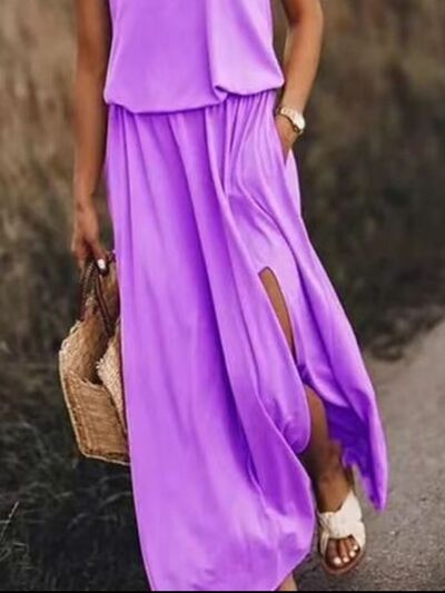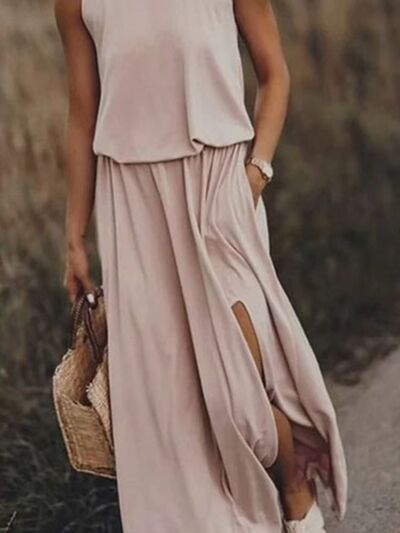 Full Size Round Neck Sleeveless Slit Maxi Dress Plus Size