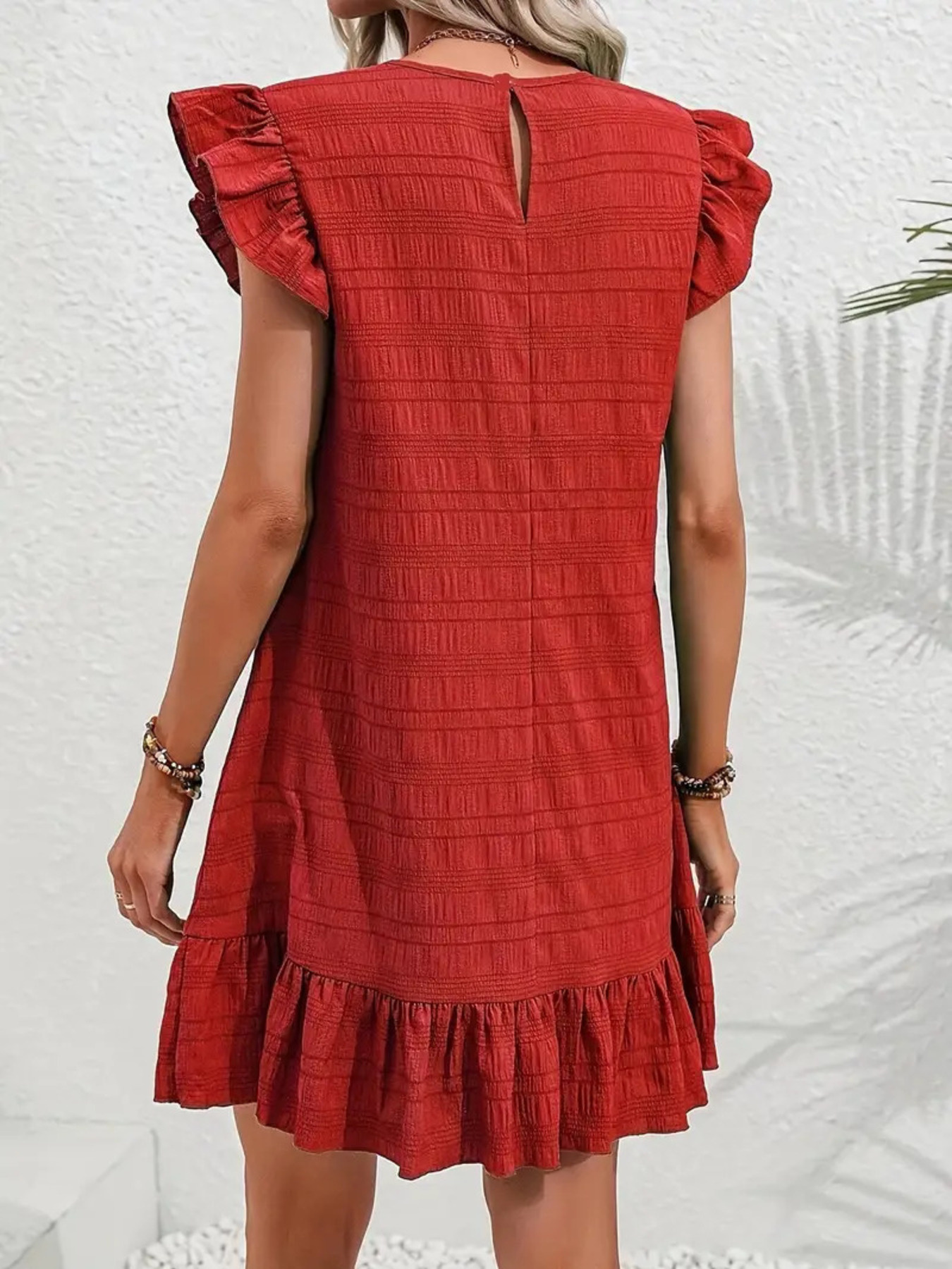 Full Size Ruffled Flutter Sleeve Textured Mini Dress Plus Size