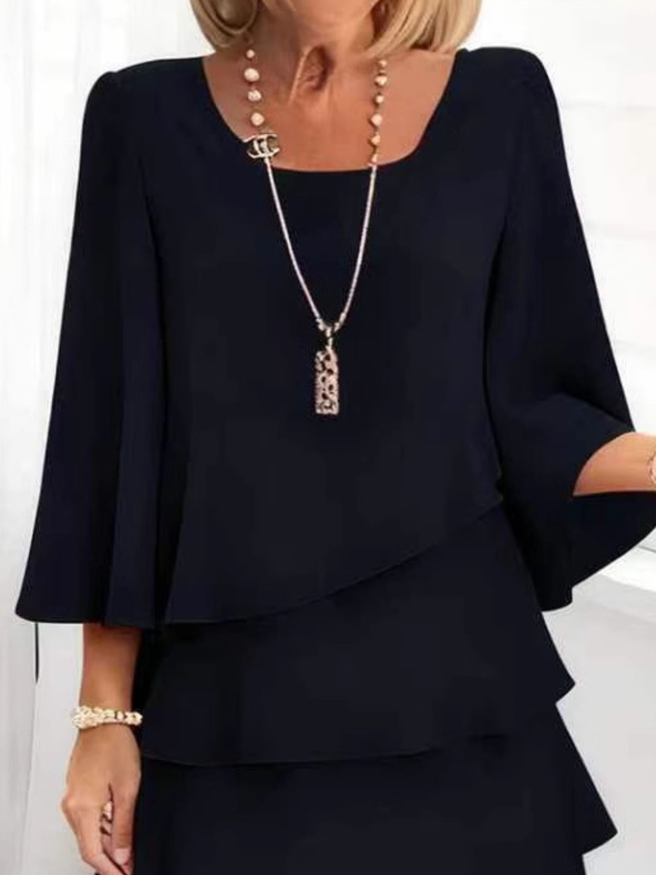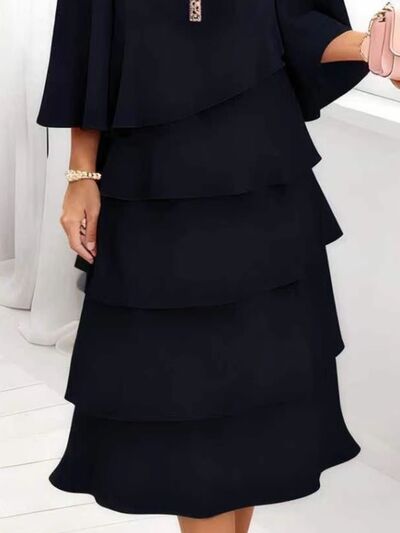 Full Size Ruffled Layered 3/4 Sleeve Dress Plus Size