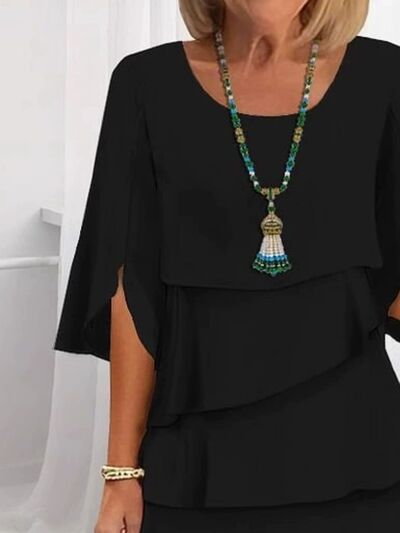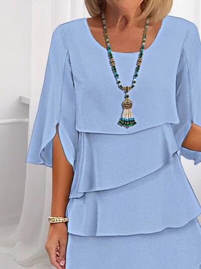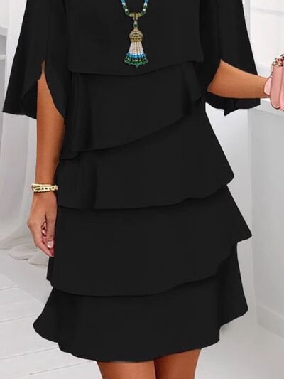 Full Size Ruffled Layered Flutter Sleeve Dress Plus Size
