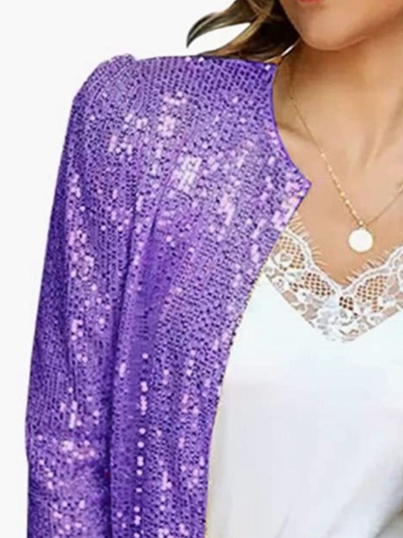 Full Size Sequin Long Sleeve Jacket Plus Size