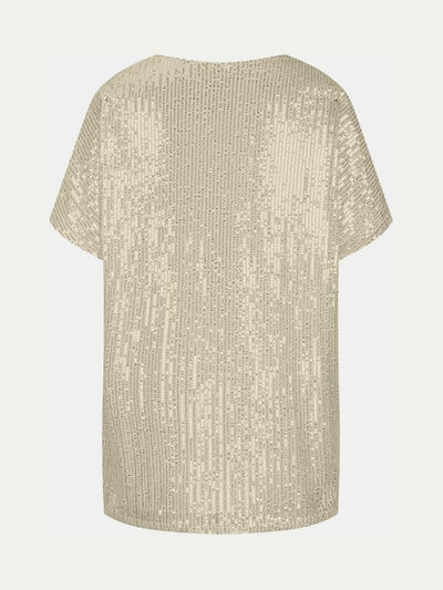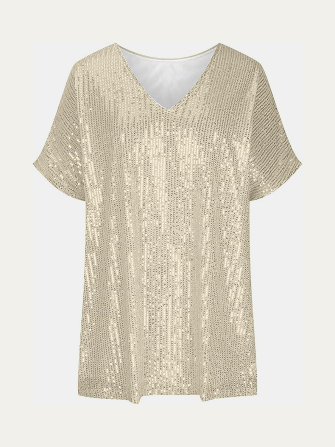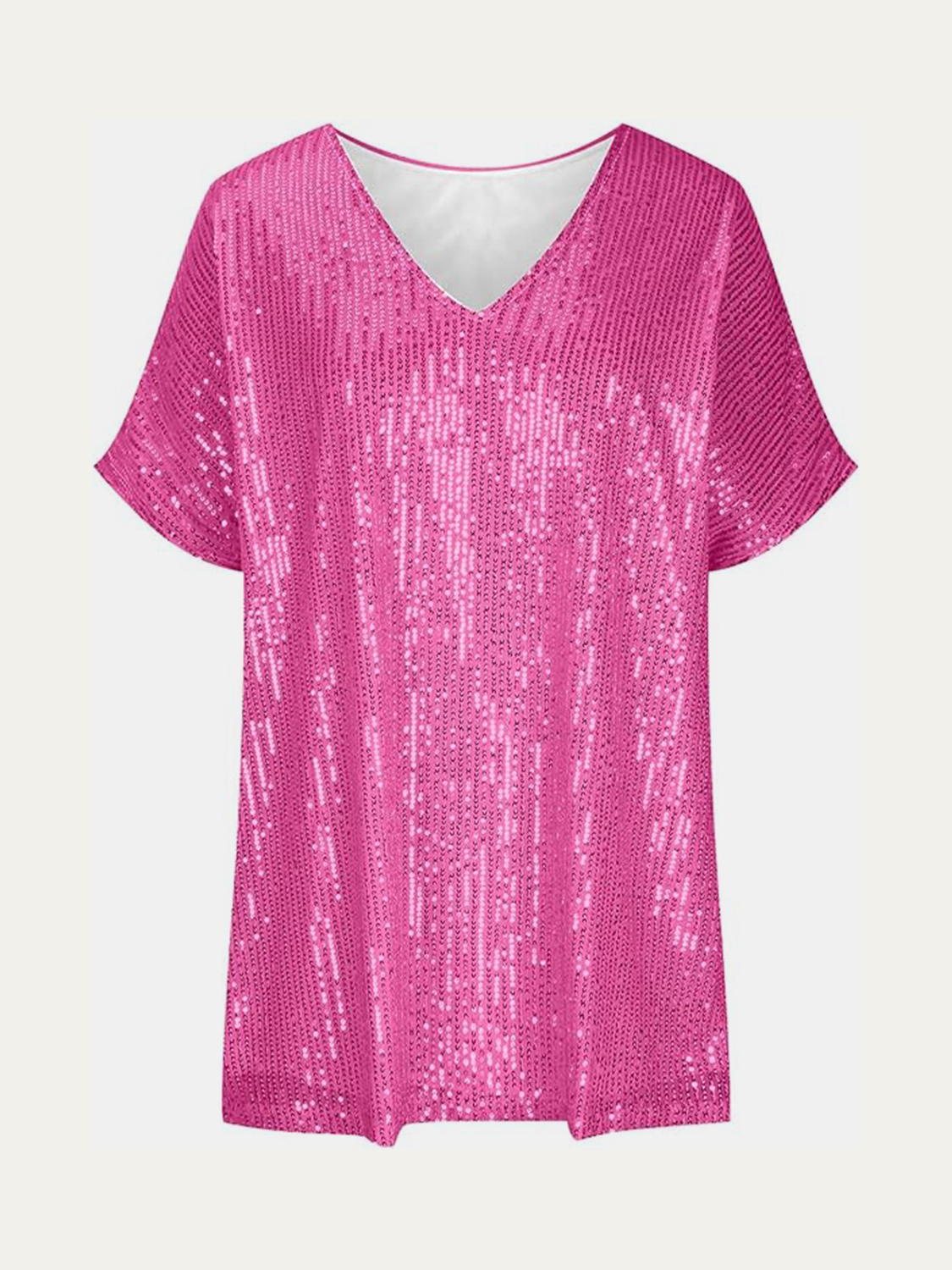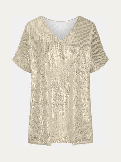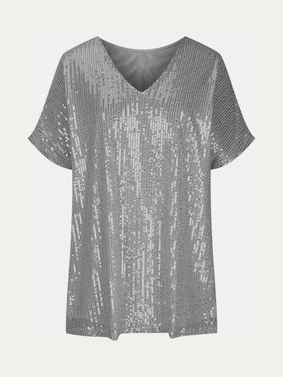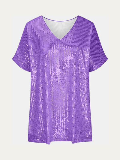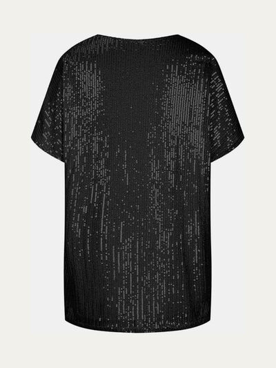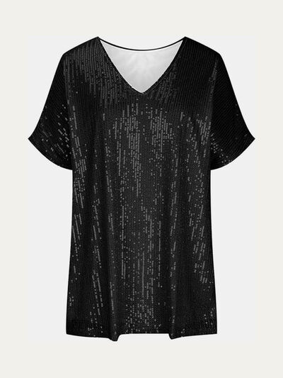 Full Size Sequin V-Neck Short Sleeve Top