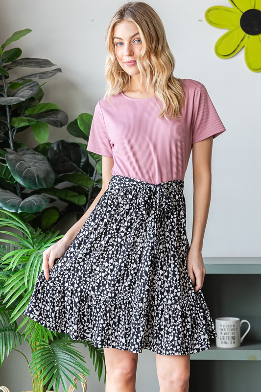 Full Size Short Sleeve Solid And Animal Print Mini Dress Plus Size
