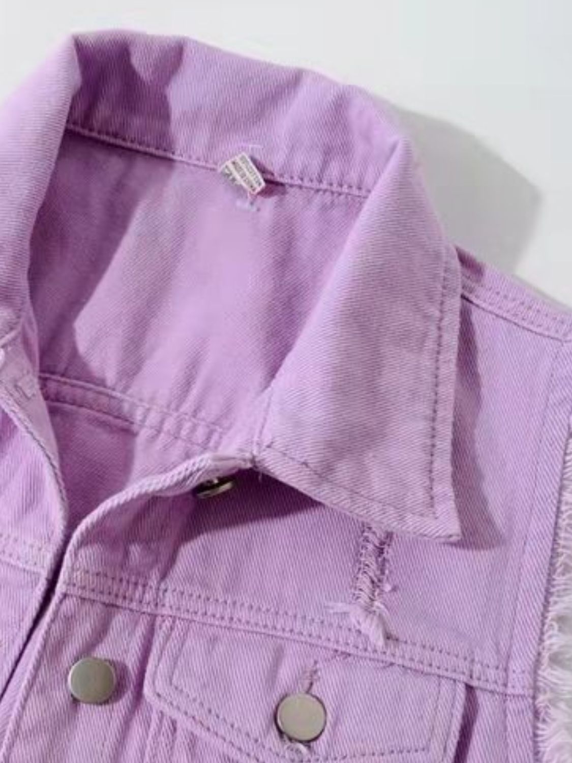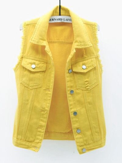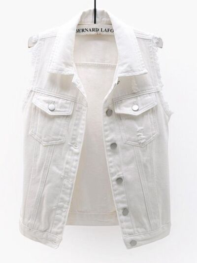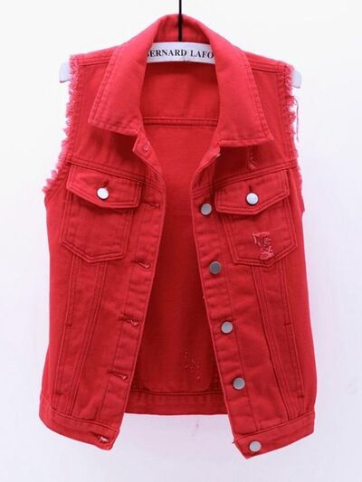 Full Size Sleeveless Frayed Denim Vest Jacket Plus Size