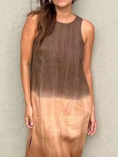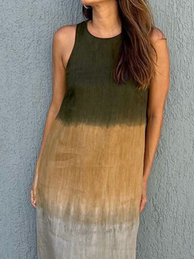 Full Size Sleeveless Gradient Tank Midi Dress Plus Size