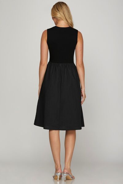 Full Size Sleeveless Poplin Woven Midi Dress with Pockets Plus Size