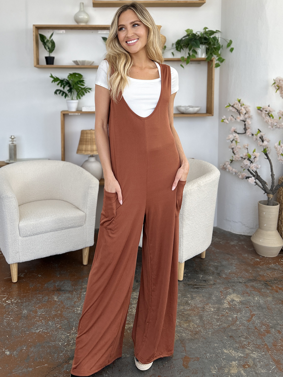Full Size Sleeveless Wide Leg Jumpsuit with Pockets
